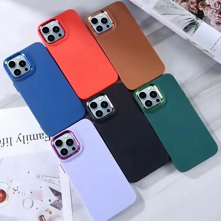 Wholesale Shockproof Solid Color Soft Silicone Luxury Design Mobile Case 360 Full Cover Camera Protection for 16/15/14/13