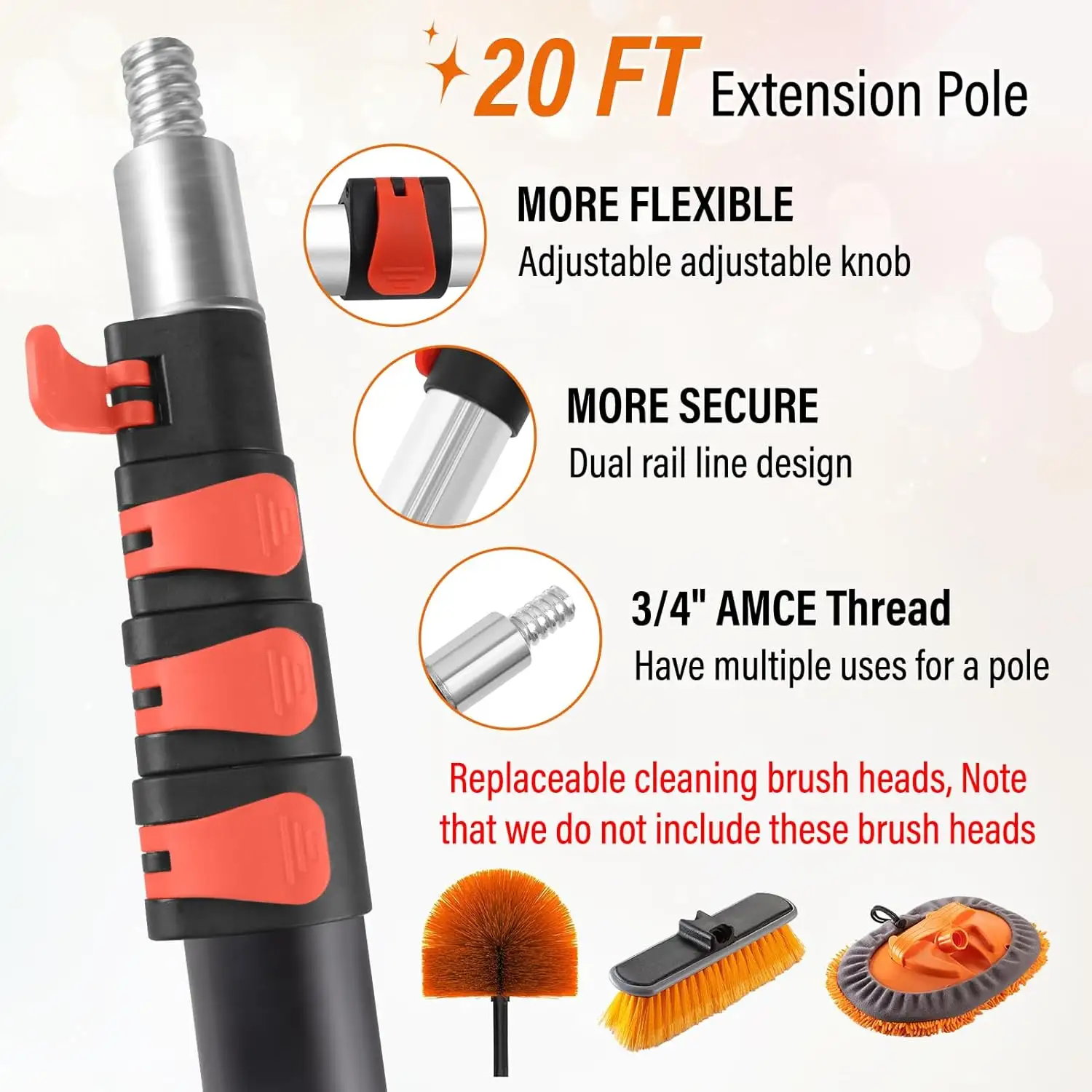 24FT Professional Window Cleaning Kit 2-in-1 Aluminum Telescopic Tool 5-24FT Pole 180° Rotatable Squeegee High Window Cleaning