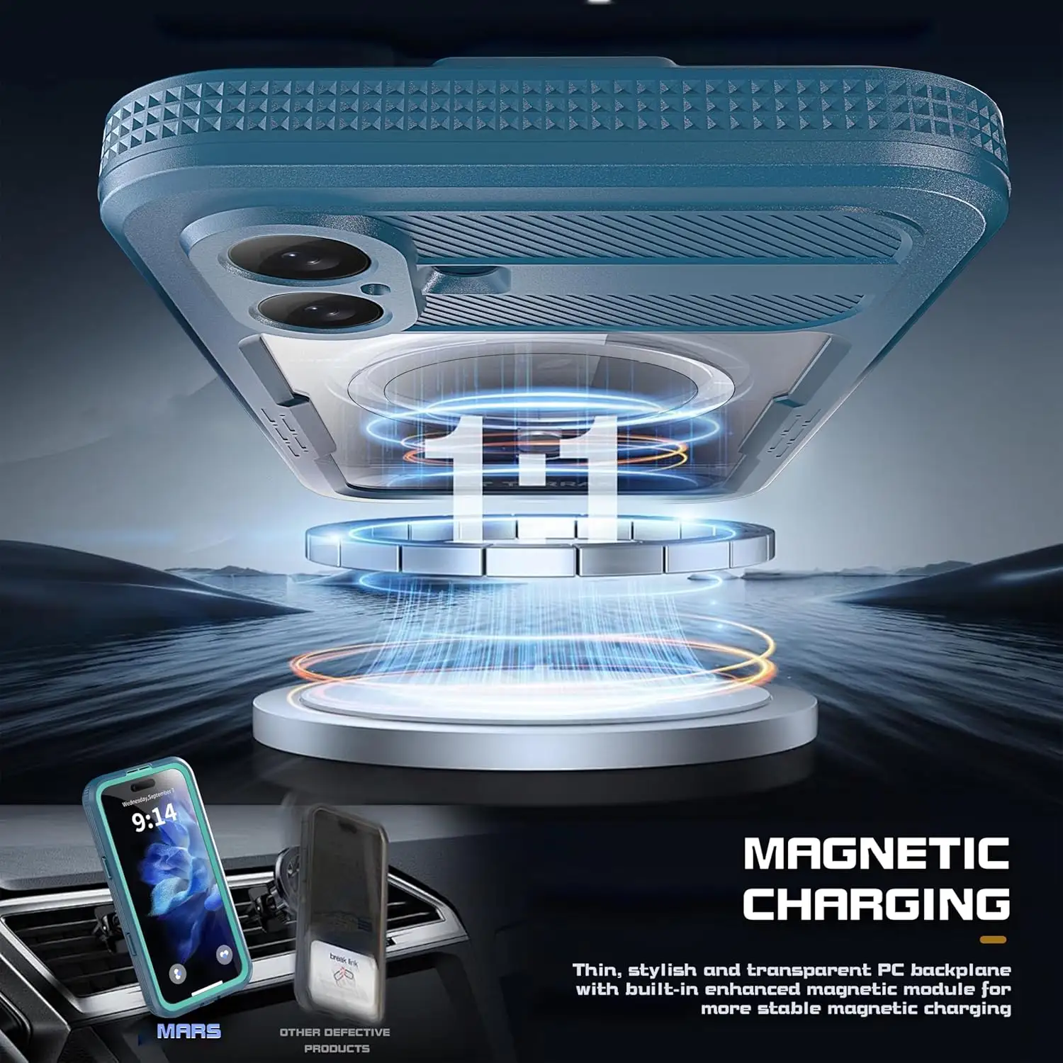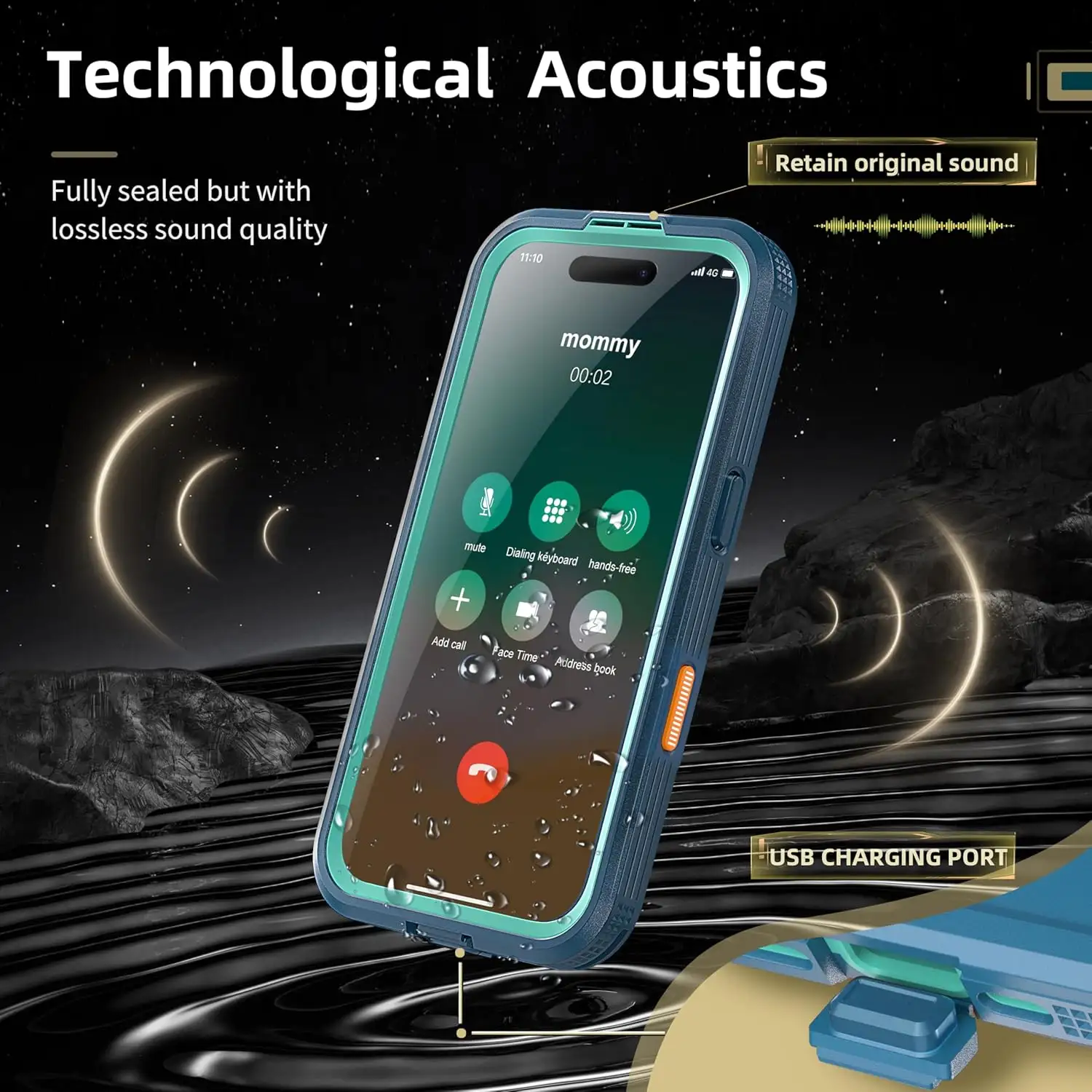360° Protection Waterproof Phone Case for IPhone16/16 Plus ,Translucent Teal, Anti-Slip & Comfortable Grip Shockproof Cover