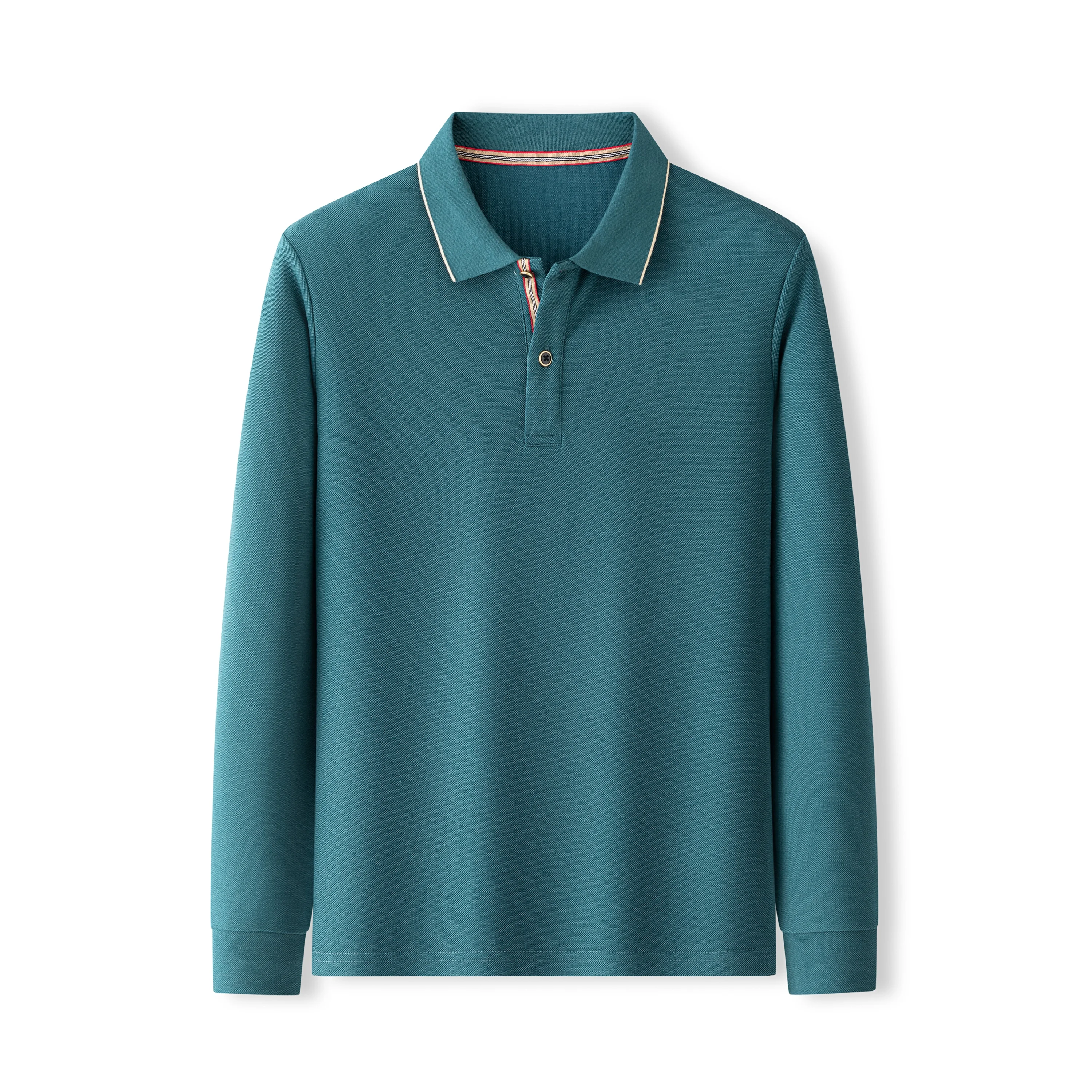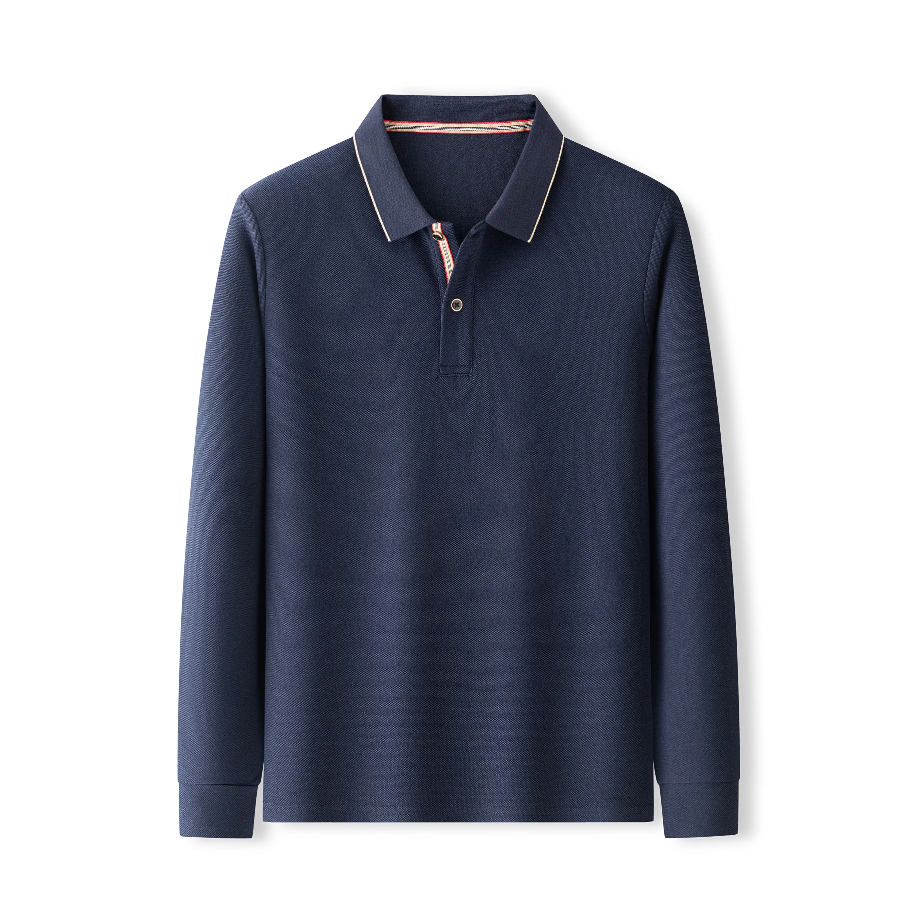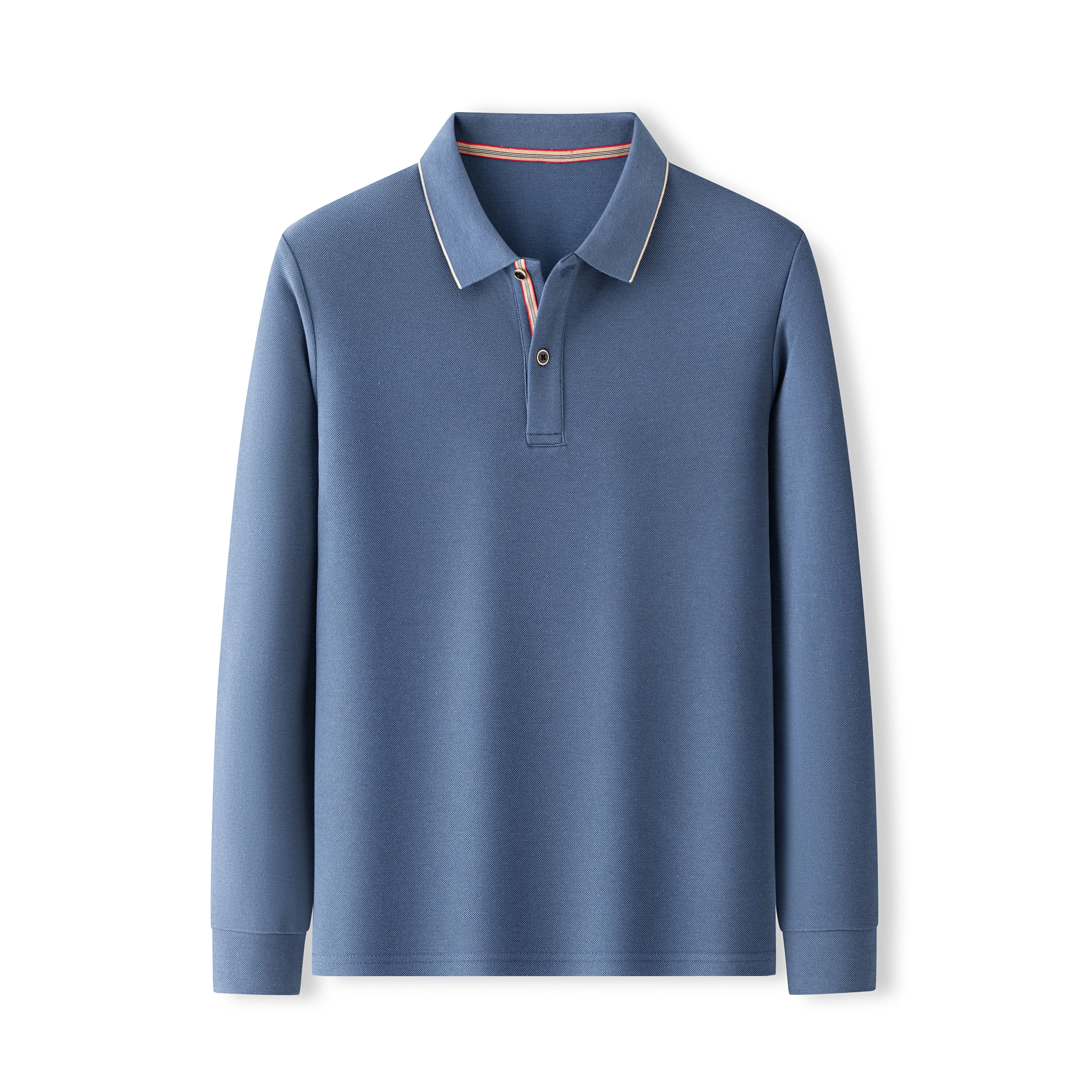 Autumn Style Men's Kangaroo Fur Long-Sleeved for Polo Shirt Fine Lines Embroidery Collar Inner Front Placket Business Casual