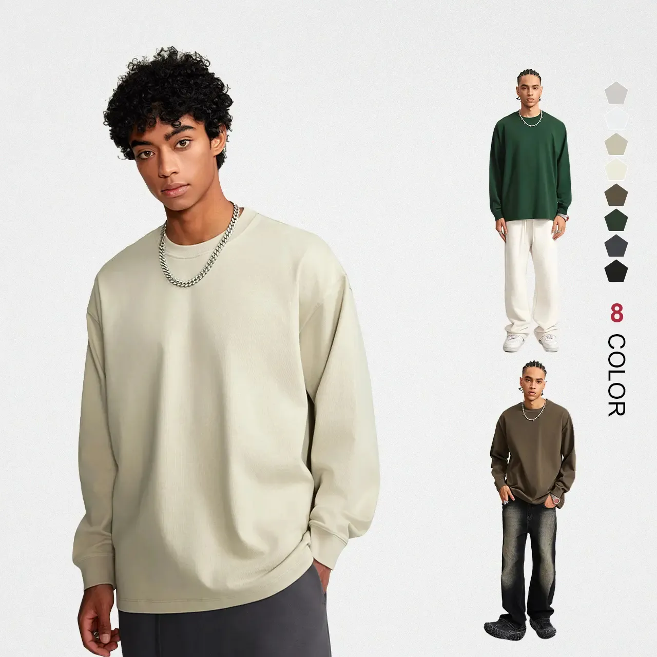 YOUMI Custom OEM Service Breathable Casual Solid Oversized Drop Shoulder Turn-down Collar Long Sleeve 445 GSM Cotton Men's Polo