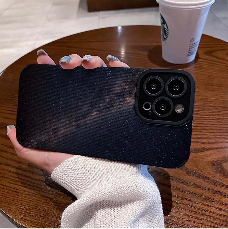 Brilliant Night Sky Printing TPU Artificial Leather Cell Mobile Phone Cover Case for Iphone 6 7 8 X Xr Xs 11 12 13 14 15 16 17