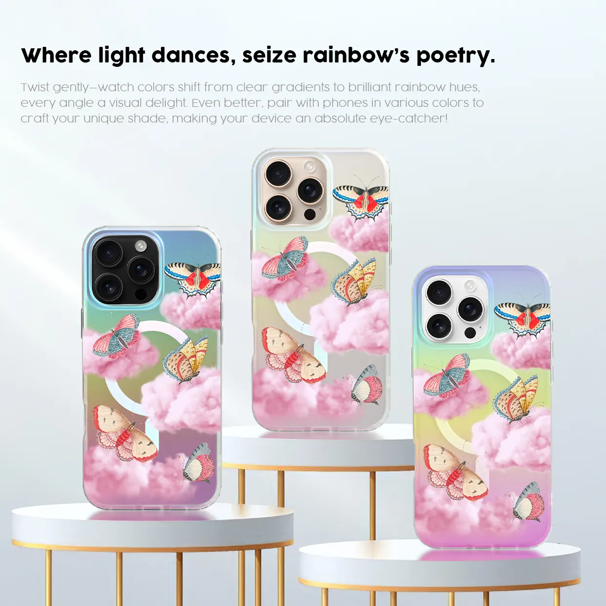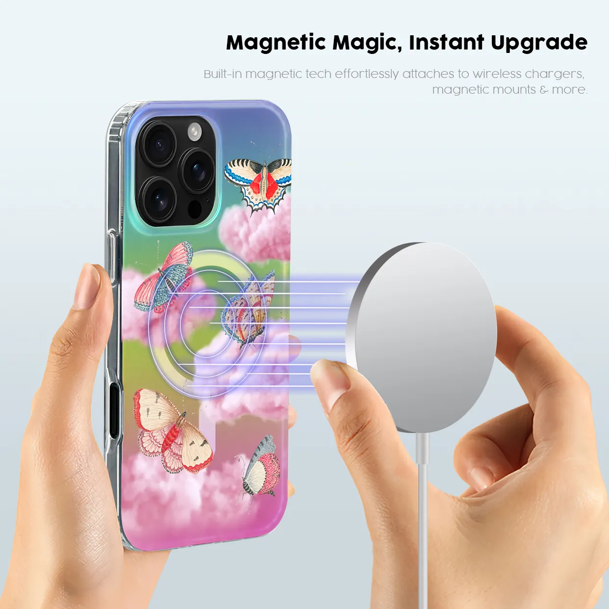 Butterflies Holographic Phone Case with Strong Magnetic for iPhone 17 16 15 14 13 Laser Holography Impact Mobile Protector Cover