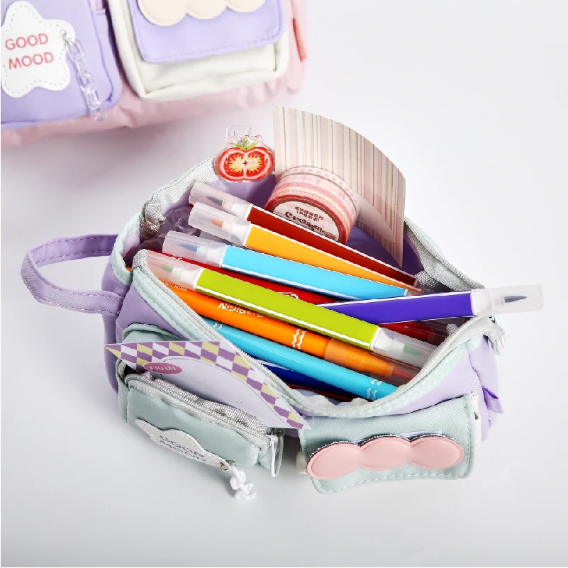 Candy Star Shards Dual-Pocket Pencil Case Large Capacity Memory Fabric 4 Styles School Office