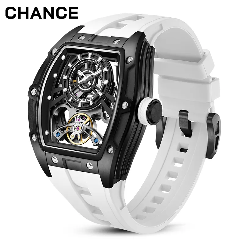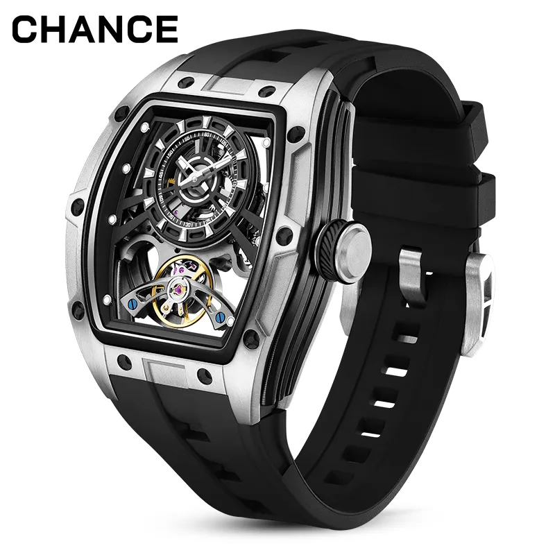 CHANCE JC-9-198G-6 Best Seller Luxury Hollow Dial Automatic Watches 30M Waterproof Luminous Silicone Strap Men Mechanical Watch