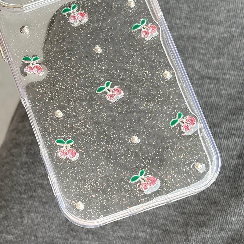 Cherry Tulip Flower Transparent Glitter Phone case for 17 Pro Max Design Soft Shell Women's iphone Cover for 16 15 Shockproof