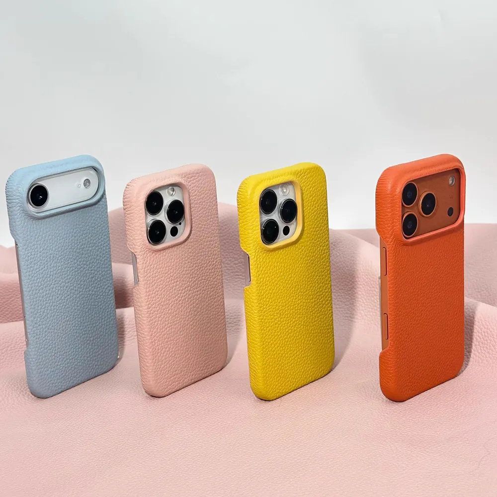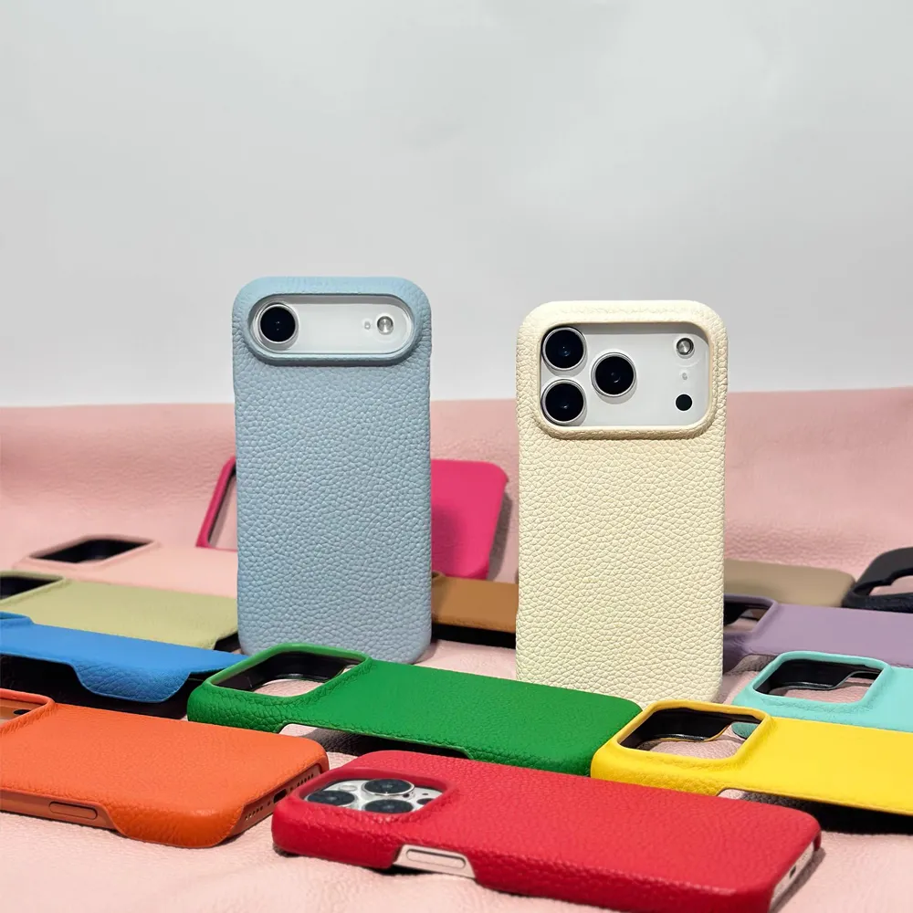Custom Design Cell Phone Case Genuine Pebble Leather Slim Shockproof Phone Case for Iphone 17 Pro Max Phone Case