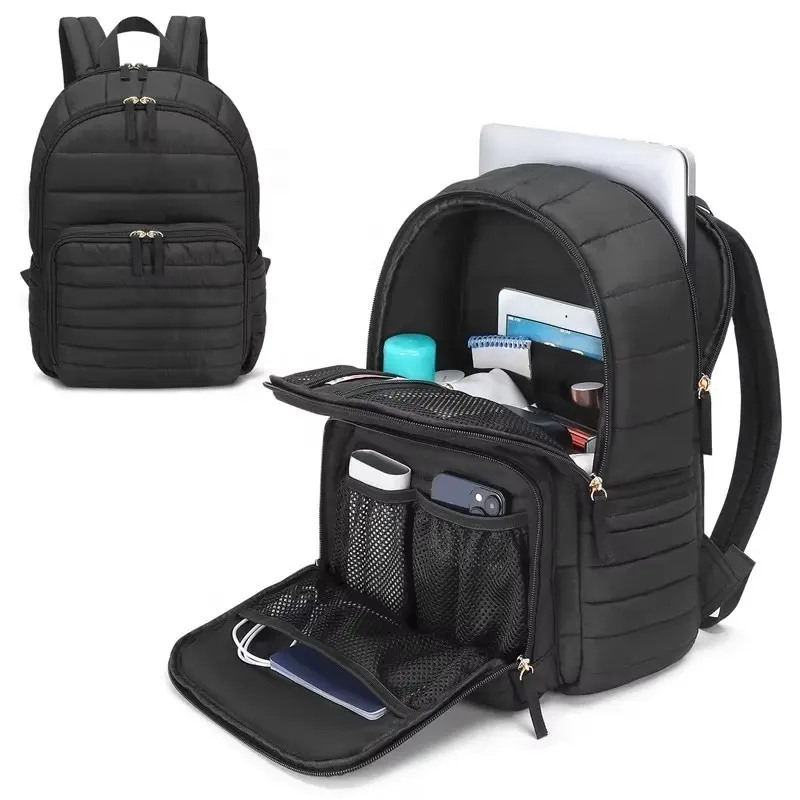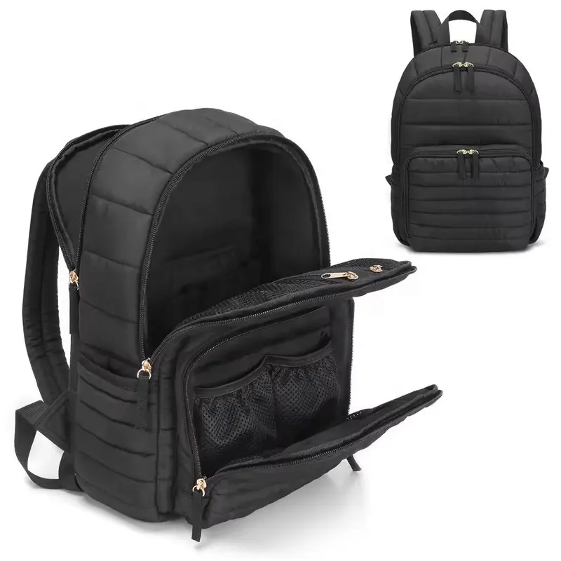 Custom Fashion Multi Pocket Lightweight Quilted Nylon Puffer Backpack with Laptop Compartment for Travel Daily Use