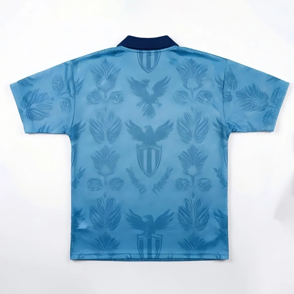 Custom Retro Totem Blokecore V-Neck Soccer Jersey Light Blue Textured Navy Collar Full Sublimation Training