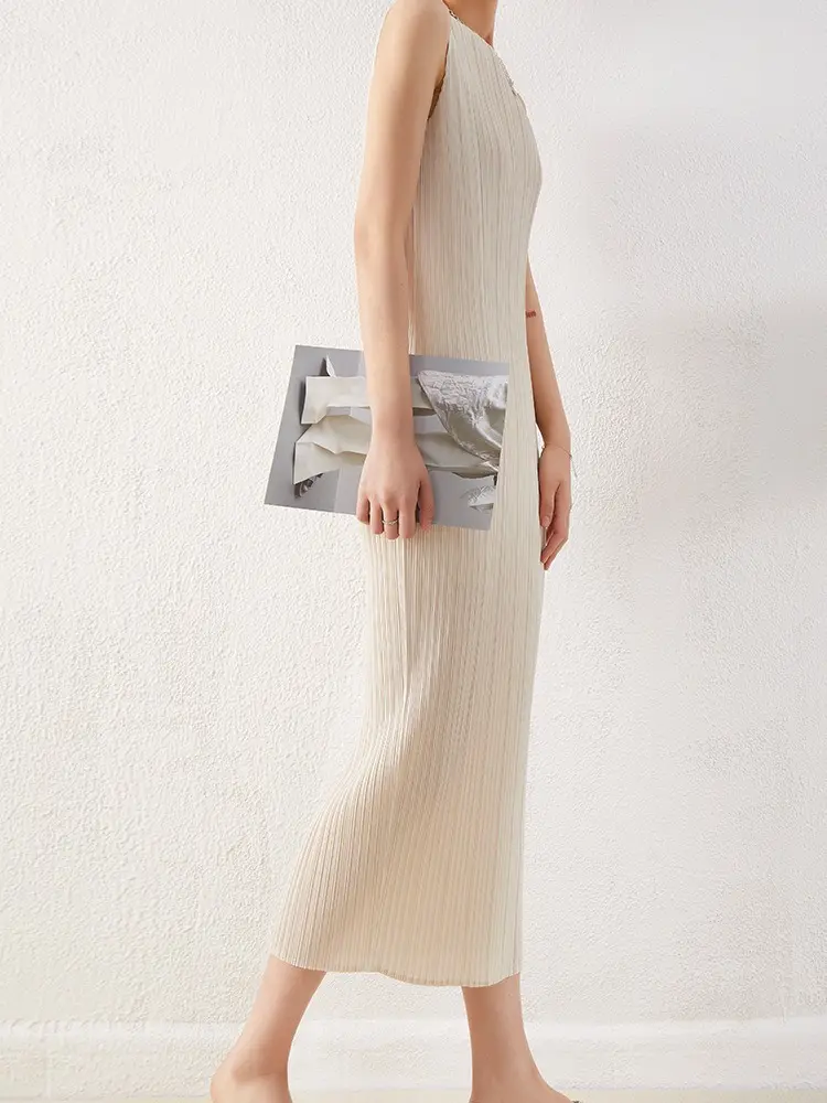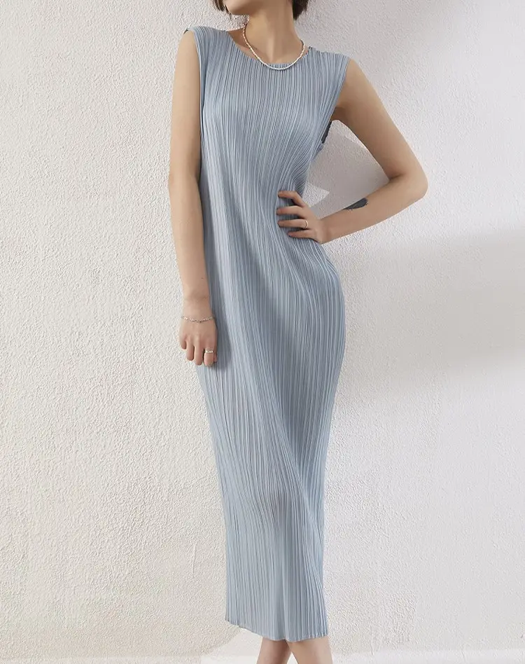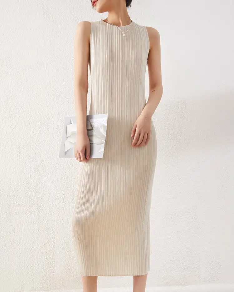 Dress Women 2024 Spring Summer Temperament Straight O Neck Sleeveless Dress