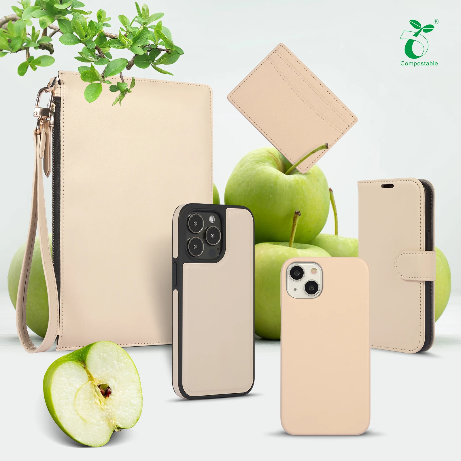 Eco Bio Apple Peel Vegan Leather Magnet Flip Book Cover Phone Case for iPhone 16 15 14 13 Pro Max Wallet Case With Card Holder