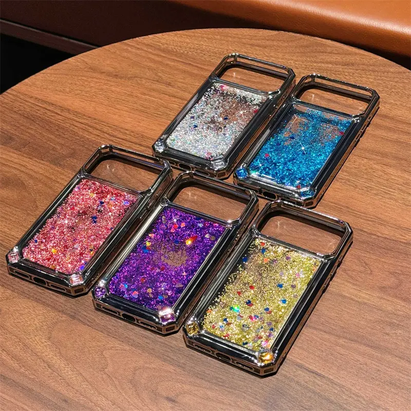 Flowing Glitter clear PC Phone case Texture for iPhone 17 Air 16 15 14 Pro Max Electroplated Tpu Bumper Transparent Back Cover