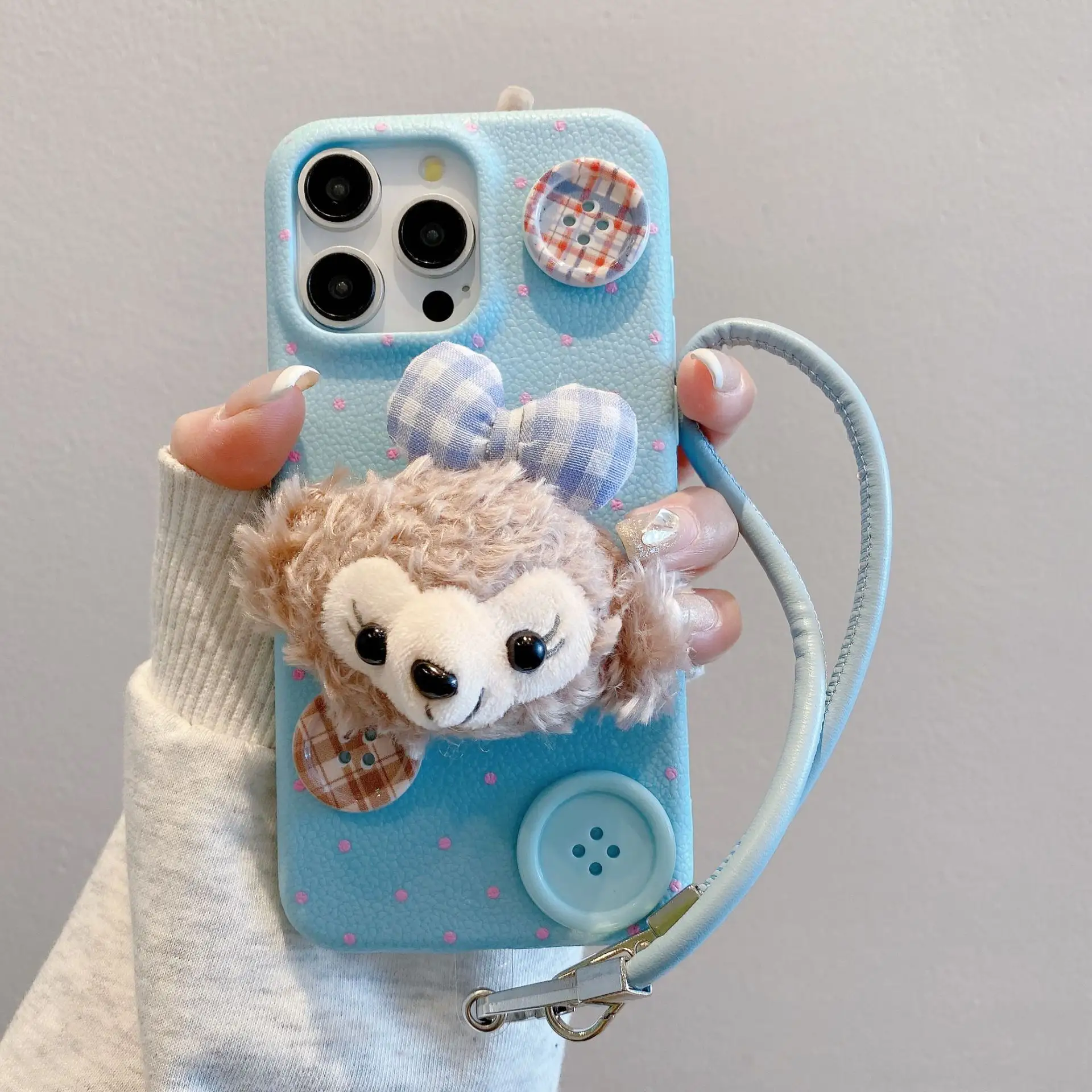 For iPhone 13/14 Kt Leather Pattern Case TPU Plush Hat Style Mobile Phone Case for Apple Soft Shell Anti-Fall Protective Cover