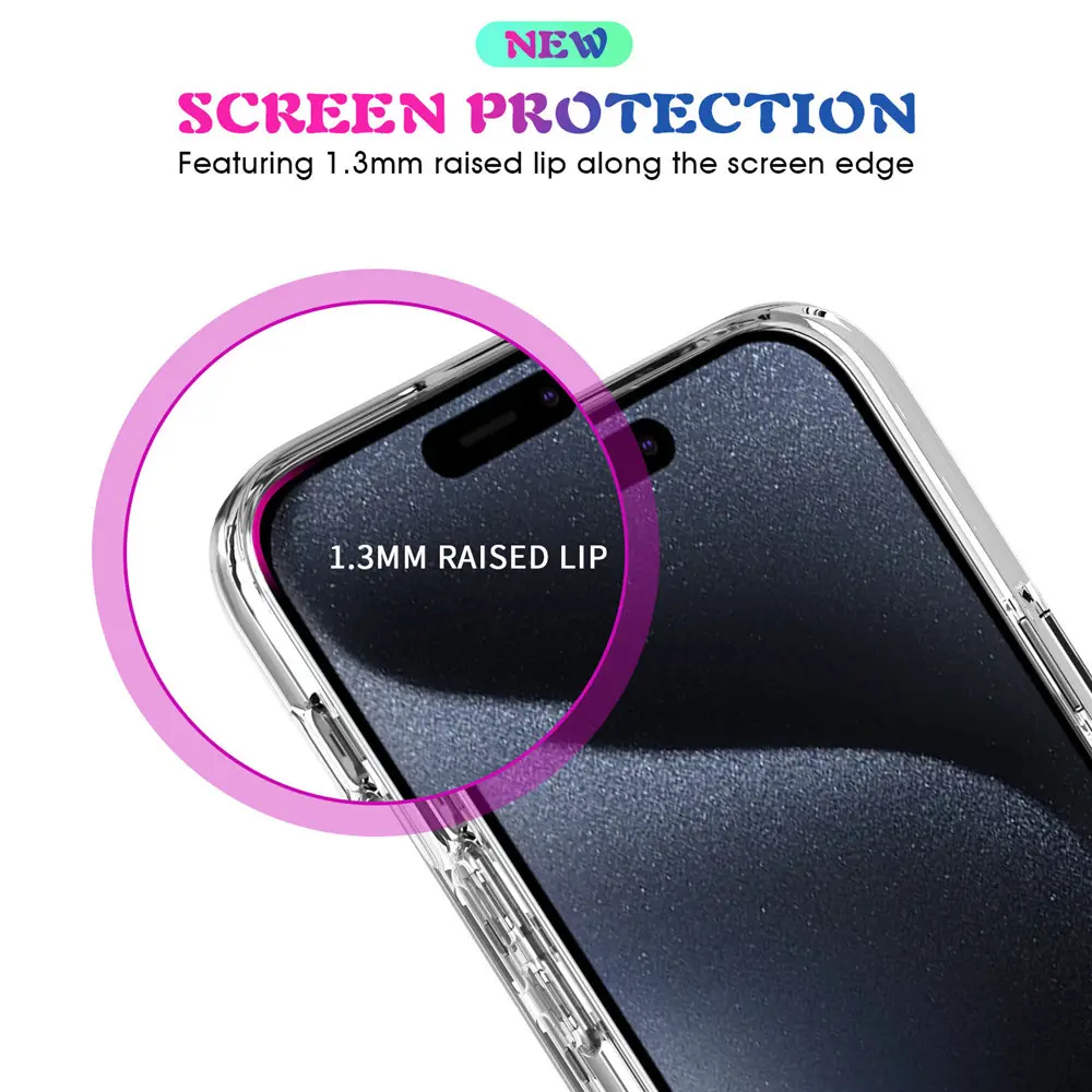 Heavy Duty Hybrid Glitter 3 in 1 Rugged Clear Shockproof TPU PC Phone Case for IPhone 11 12 13 14 15 16 17 Pro Max Plus