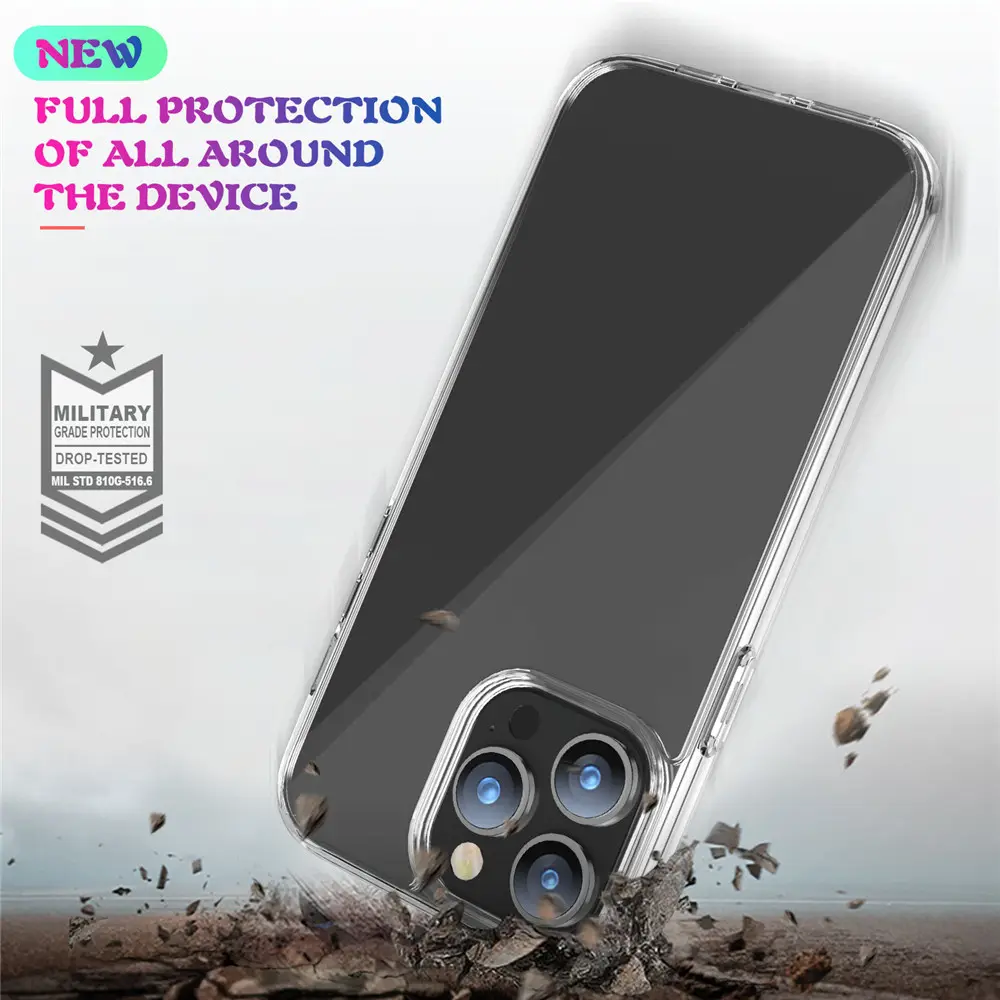 For iPhone 15 Pro Max Clear Case Slim Fit Hard PC Backplane Soft TPU Bumper Phone Case for iPhone 14 Plus 13 12 11 Pro Max X XS
