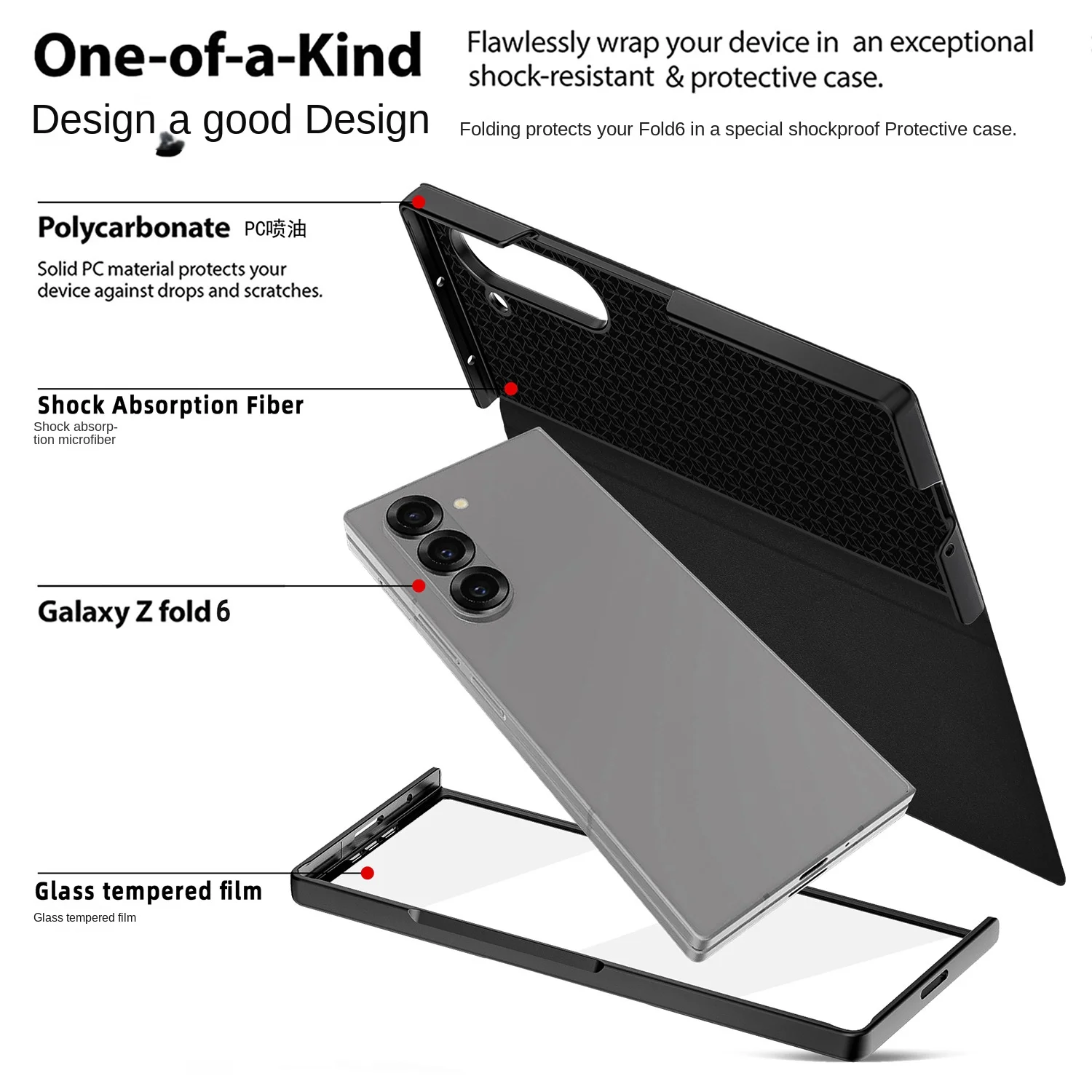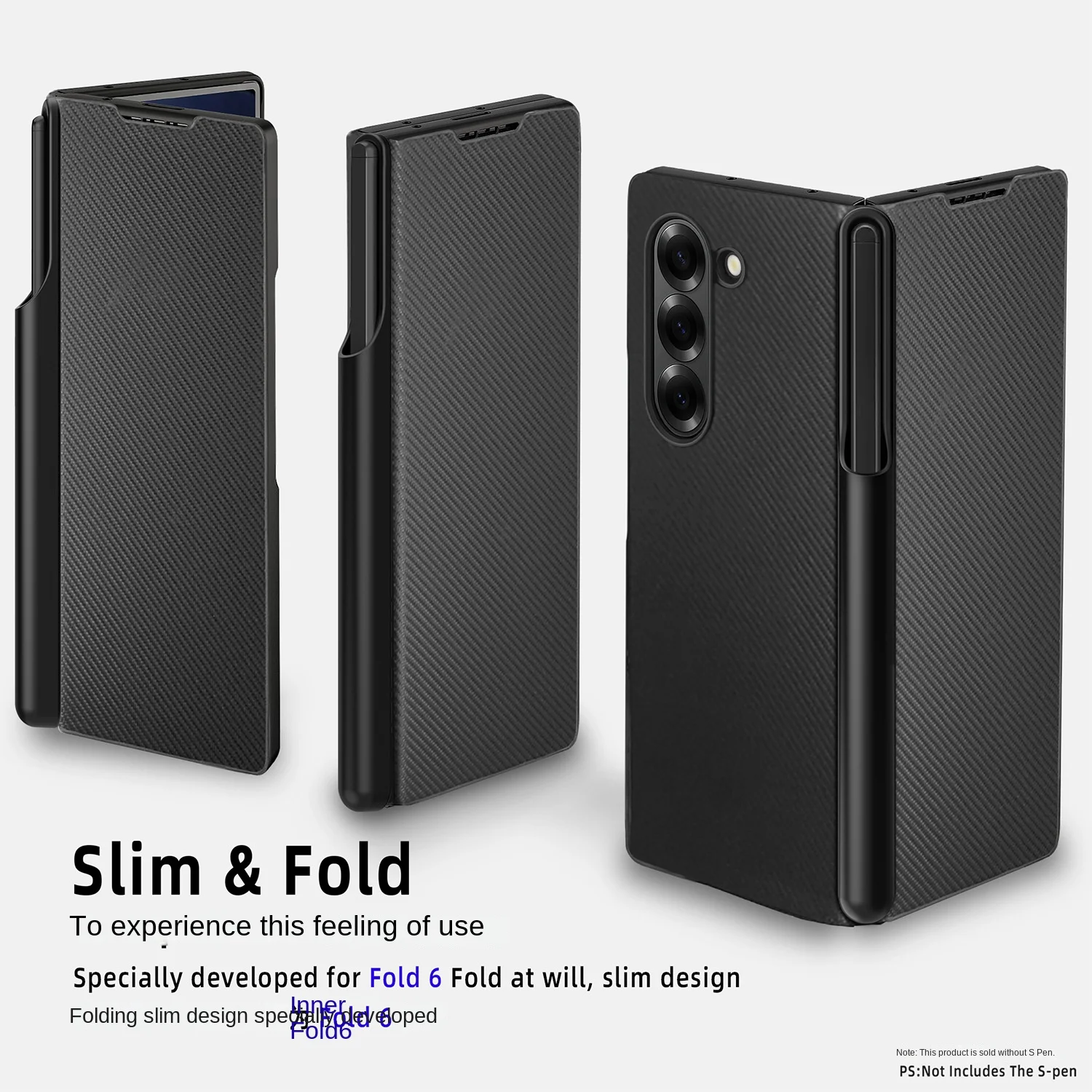 For Z Fold6 Folding Mobile Phone PC Leather Case Anti-Drop Personalized Trendy Plain One Pen Slot Simple Business