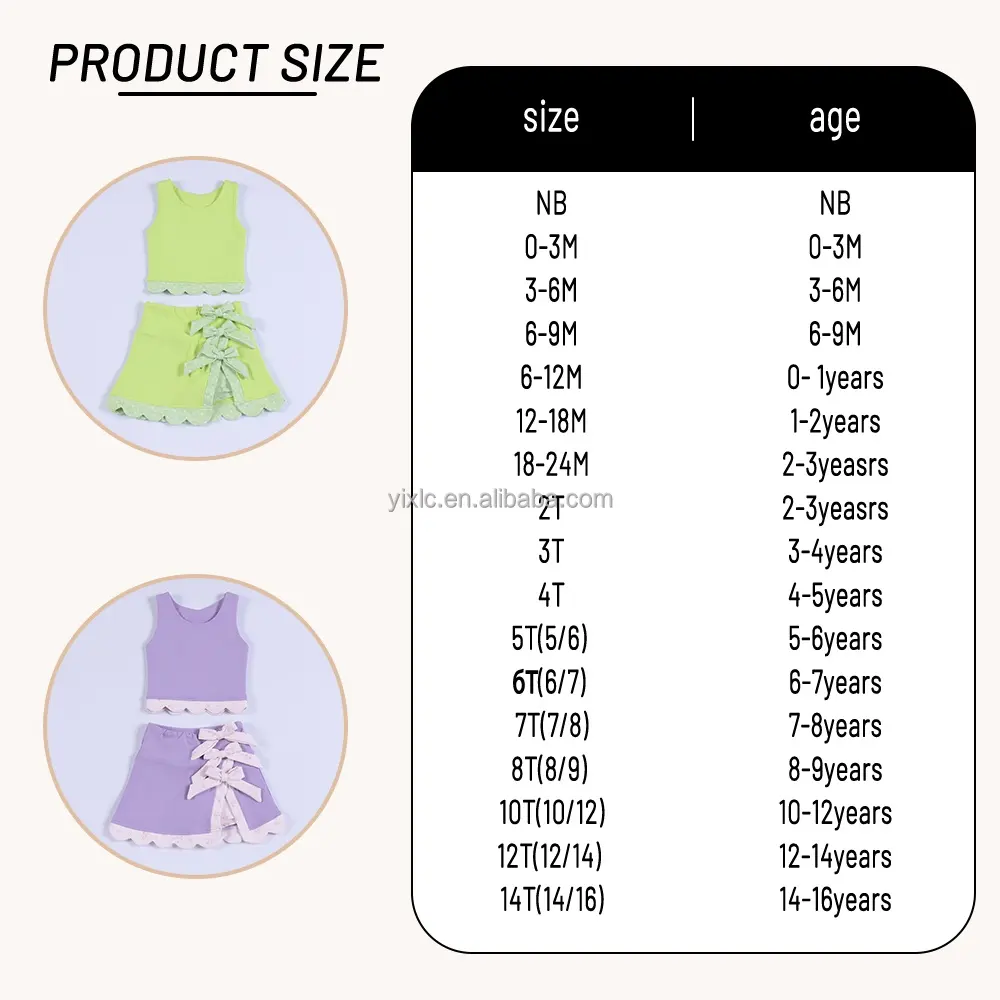 Girls 2 Piece Yoga Sleeveless Tank Skirt Set Bow Decor Built in Shorts Sweet Casual Custom Fast Shipping