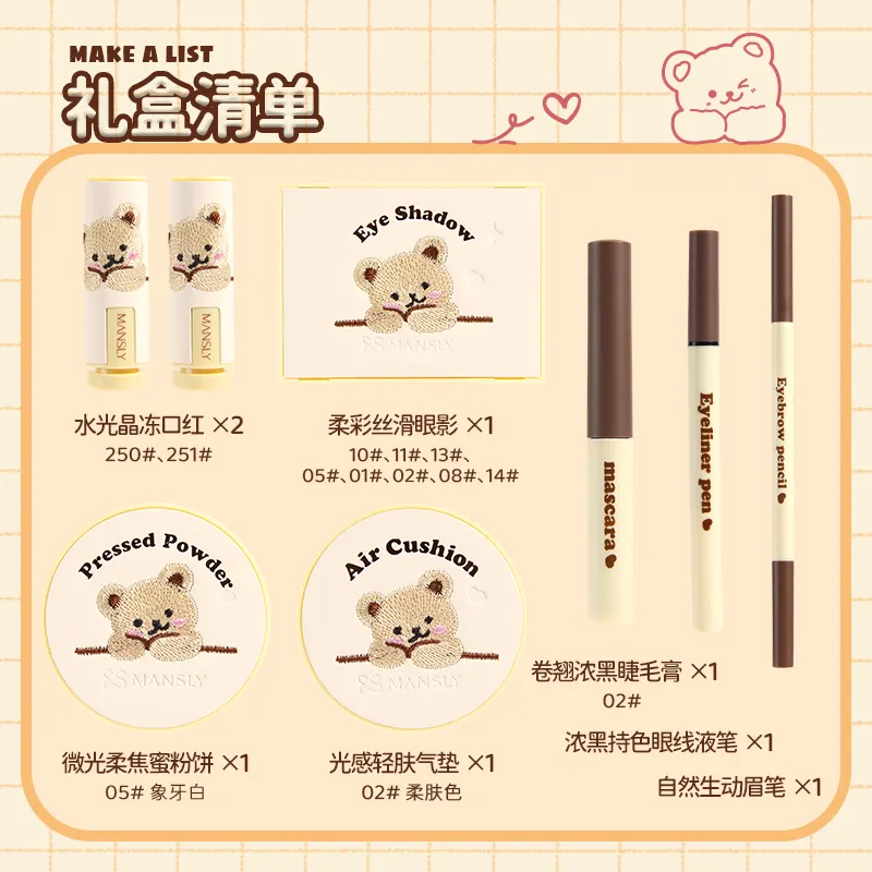 Girls Cosmetics Makeup Sets Eyeshadow Palette Eye Enhance Makeup Kit Oil Control Loose Powder Air Cushion Matte Lipstick