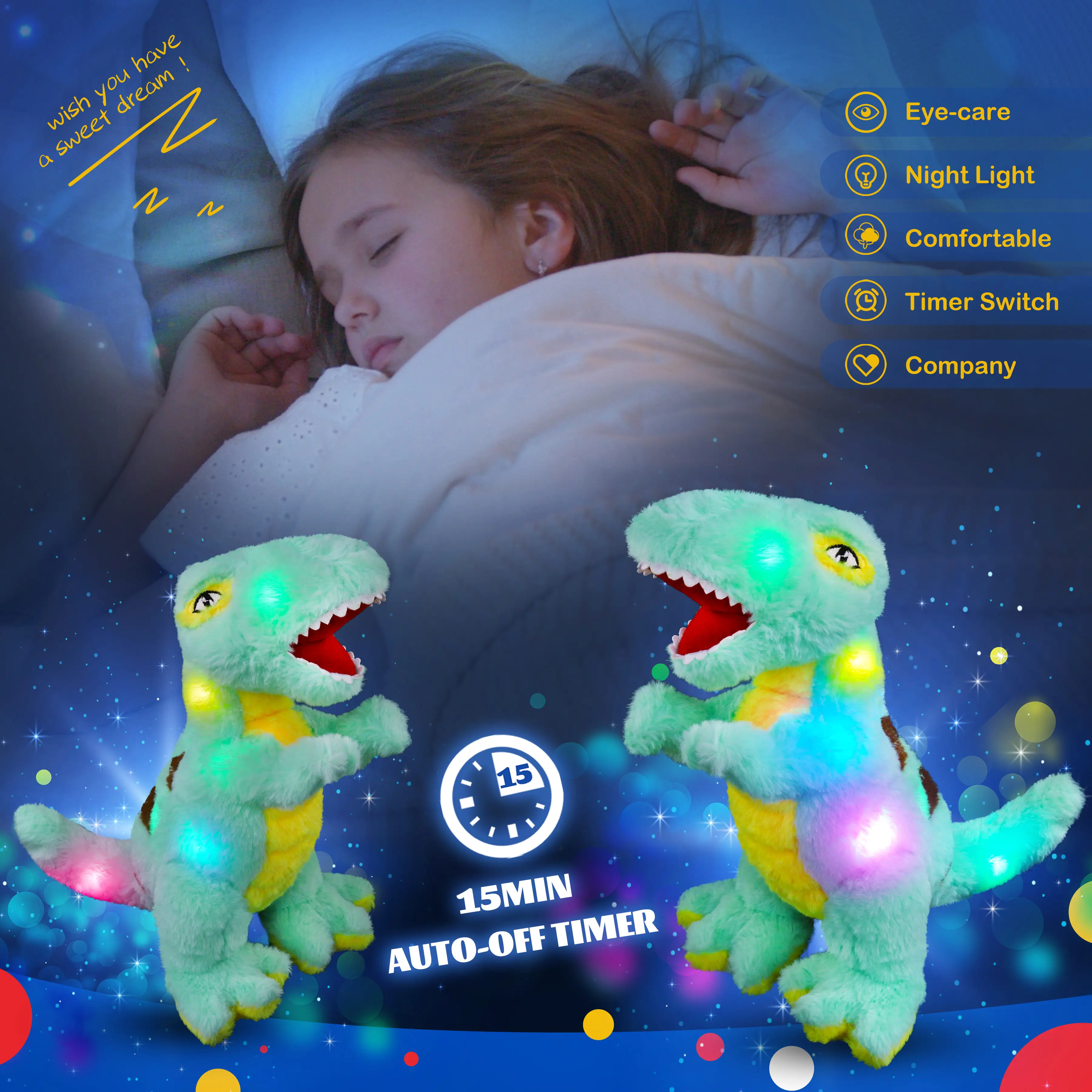 Glow Guards 14'' Light up Stuffed Dinosaur Tyrannosaurus T-Rex Soft Plush Toy with LED Night Lights Glow in the Dark Gifts