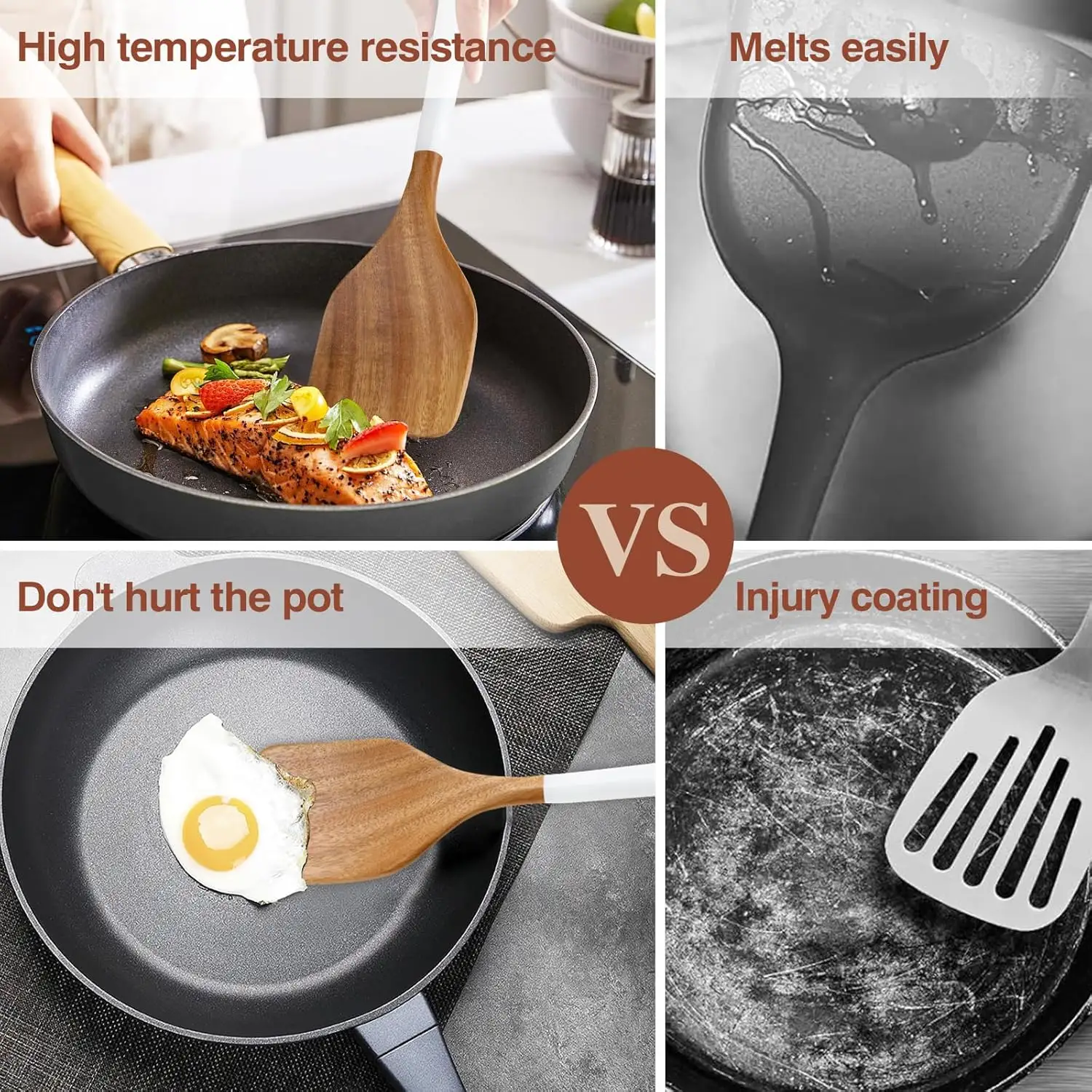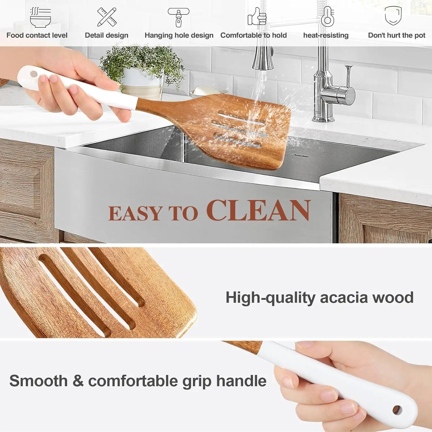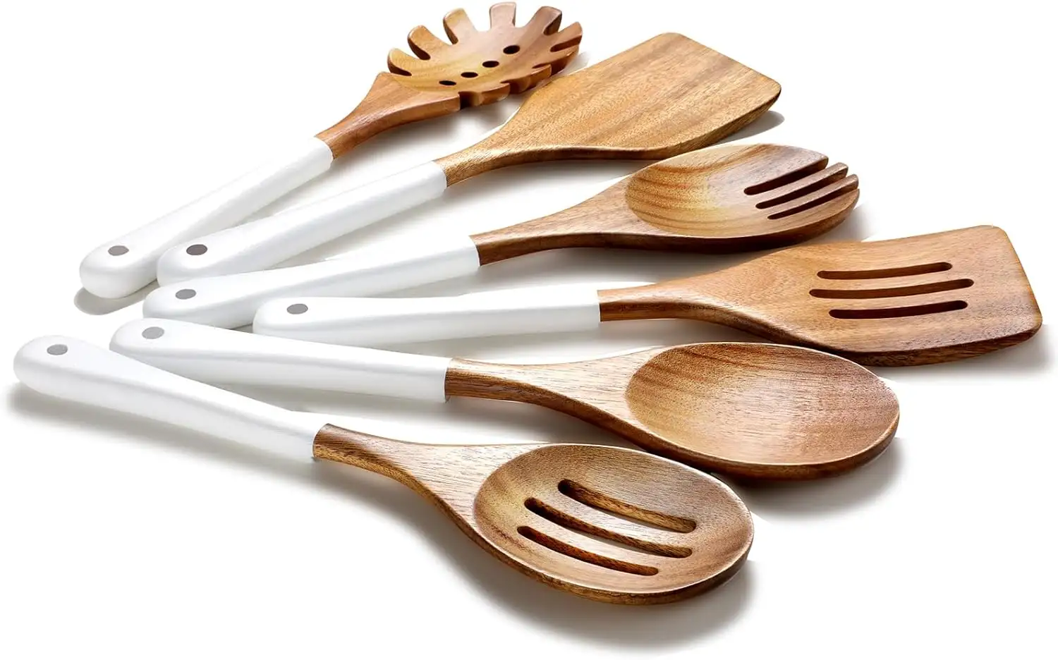 WOQI Factory Wholesale High Quality Acacia Wooden Kitchen Utensils Non-Stick Cooking Tool Sets