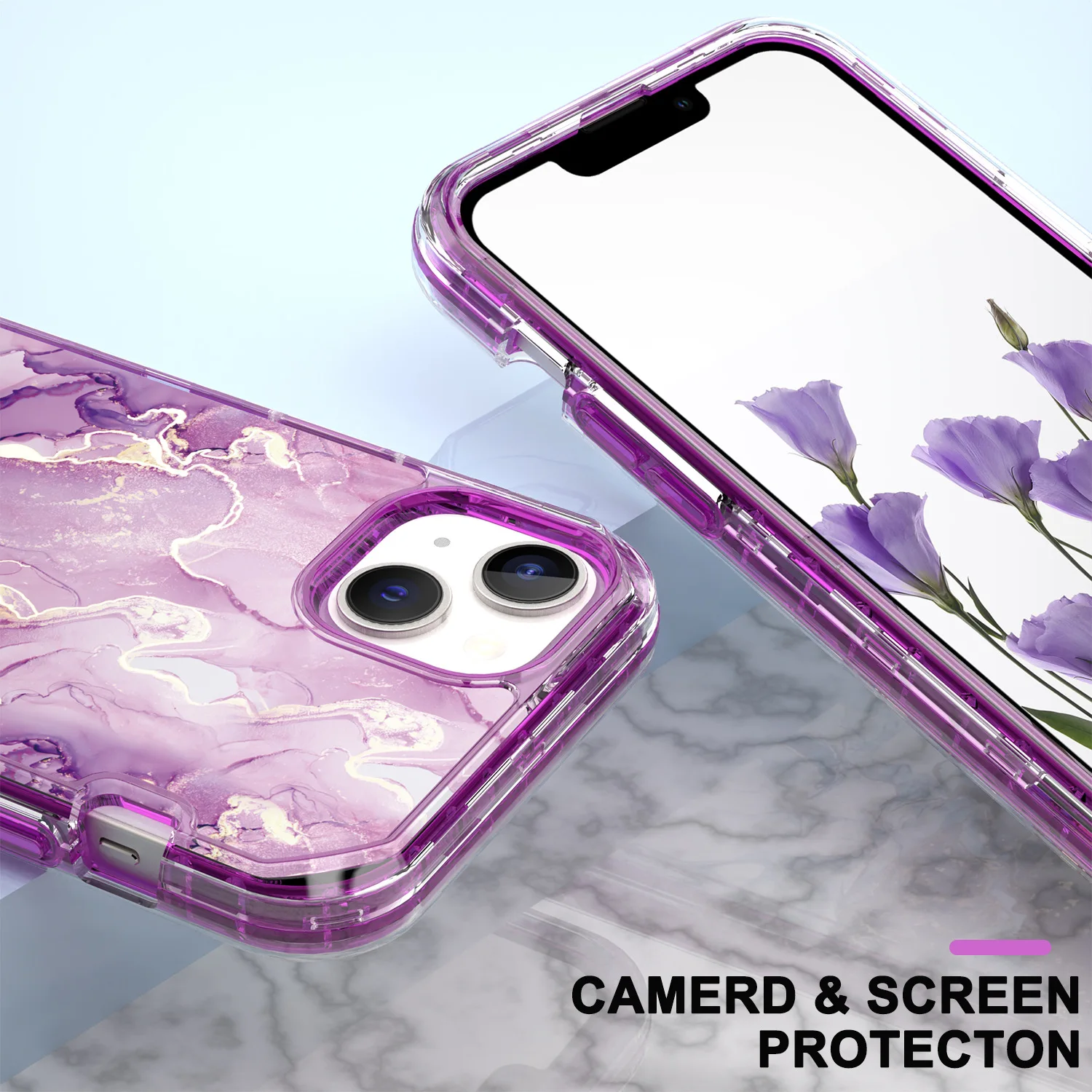 Honatop 3 in 1 360 Full Cover Protect Three Pieces TPU PC Marble Phone case for iPhone 16 15 Pro Max 14 Plus 13 12 11 XR