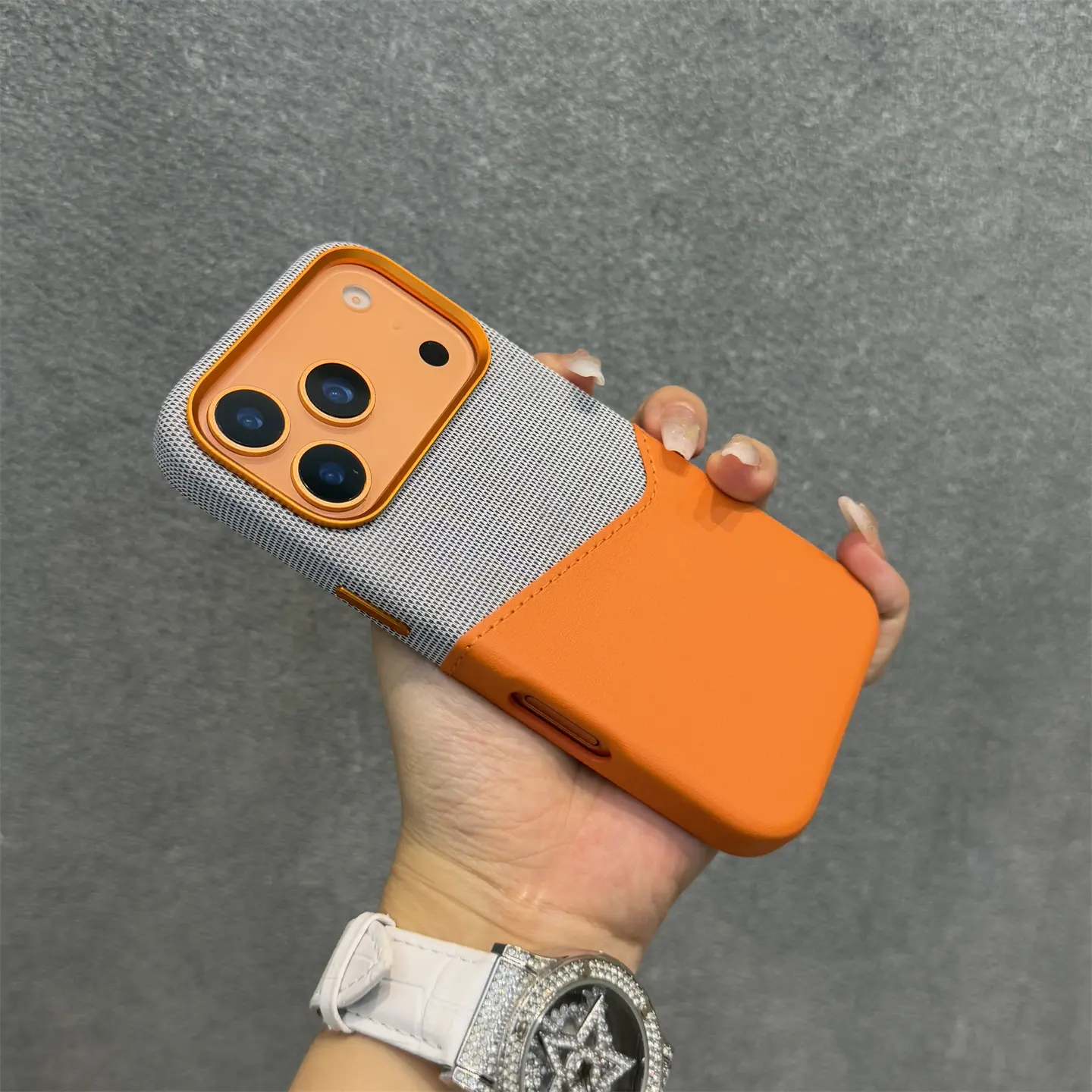 Luxury Design Matching Color PU Leather Case for iPhone 17 Pro Max/17 Pro Magnetic Case with Card Slot Orange