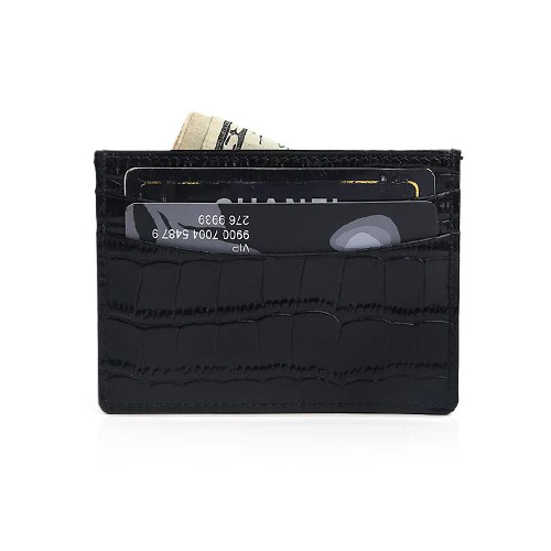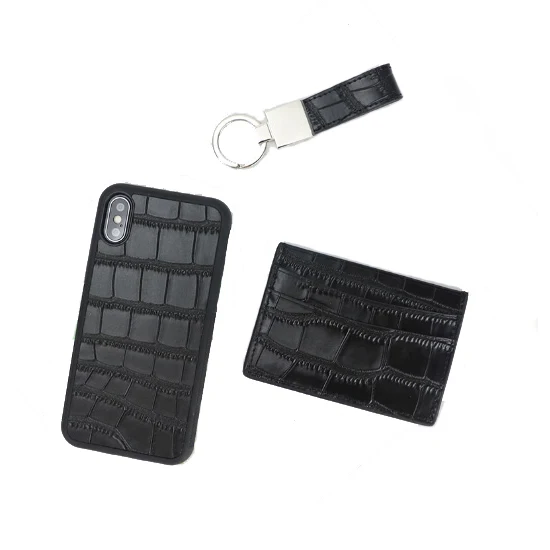 Luxury Designer Simple Design Key Mobile Phone Cover Card Case Unisex Short Waterproof RFID Blocking Black Genuine Leather Gift