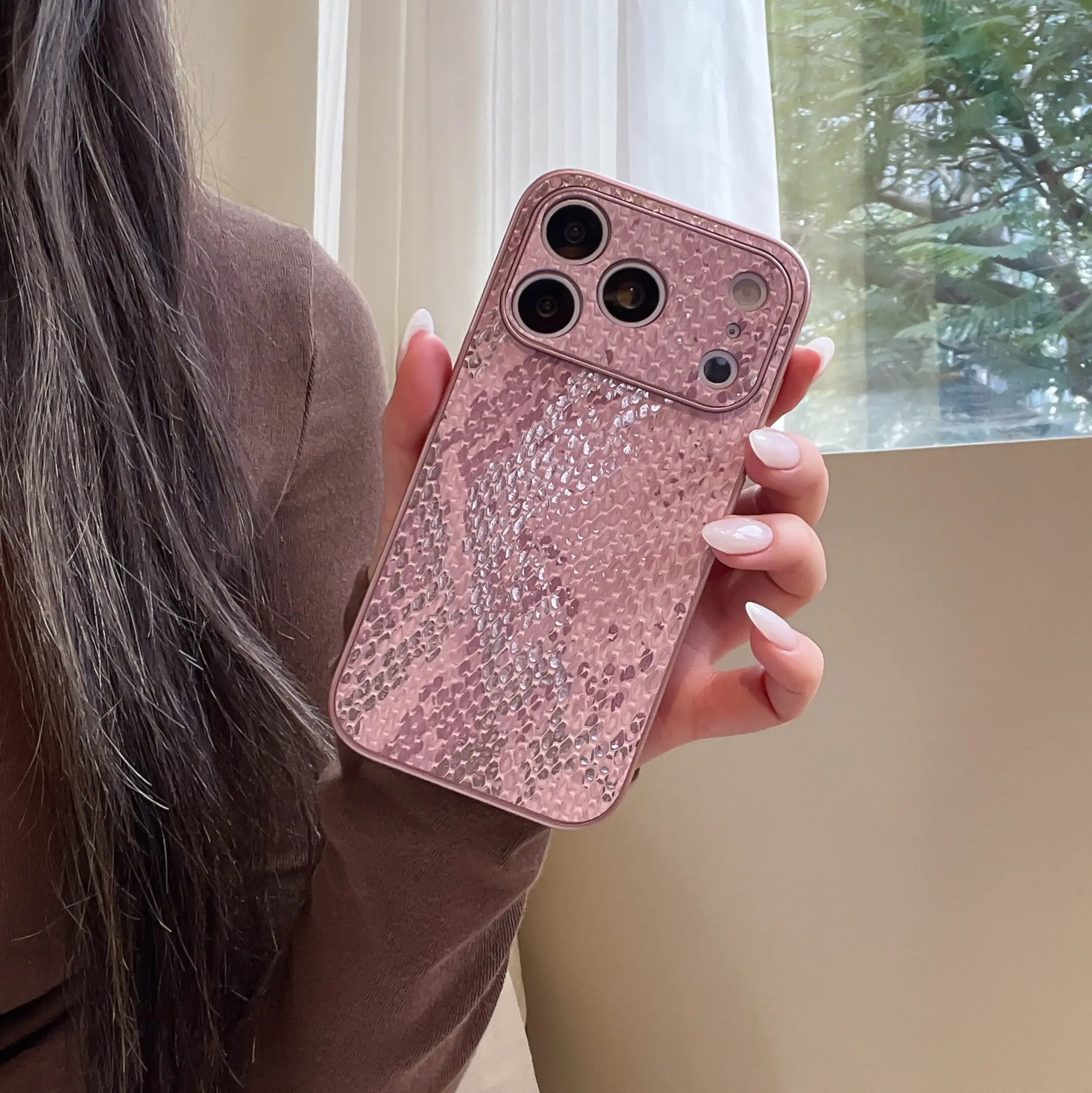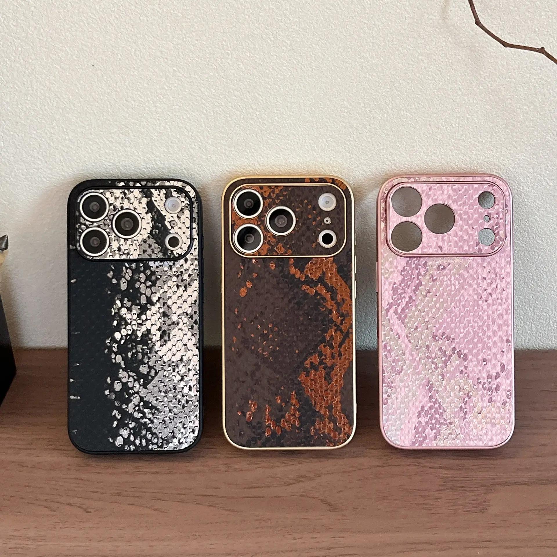 Luxury Gilding Snakeskin Grain Large Window Phone Case for iPhone 17 16 15 14 ProMax Protective Phone Cover