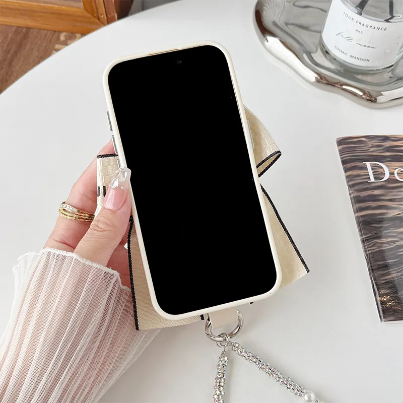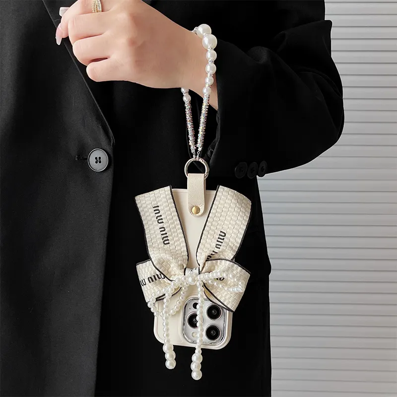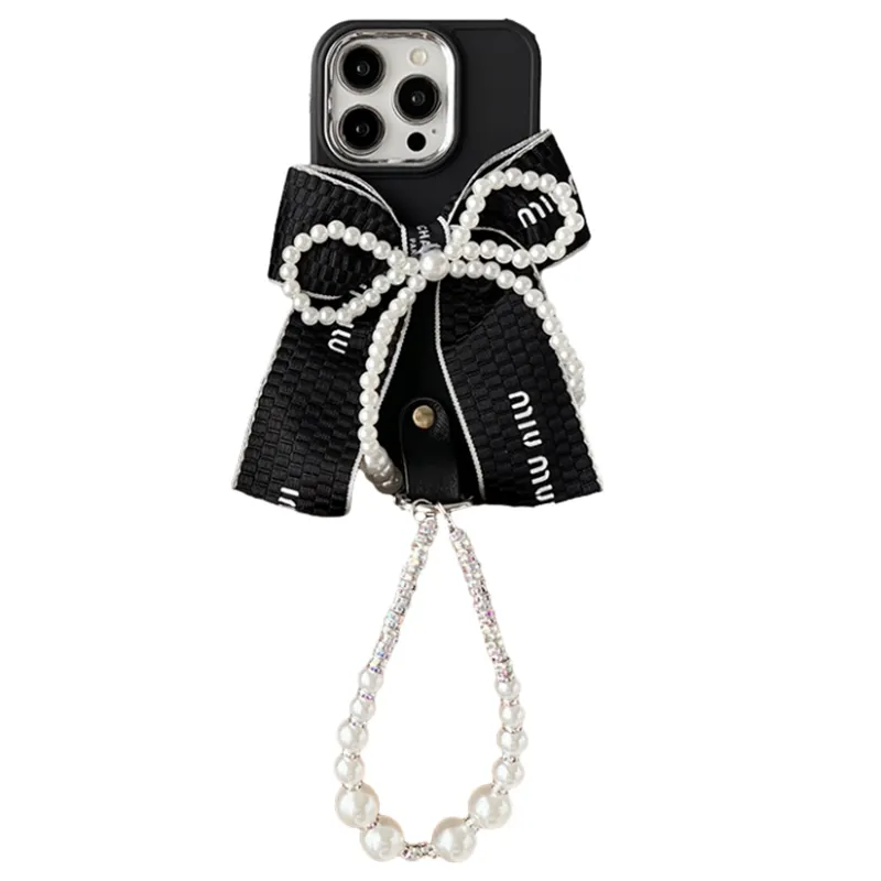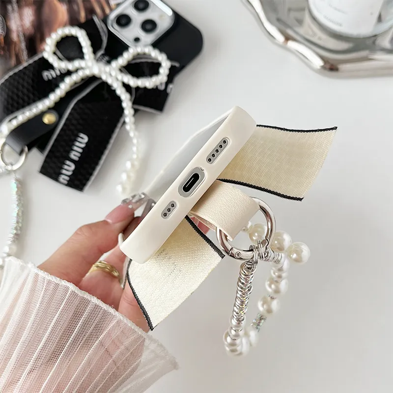Luxury INS Style Pearl Bow Ring Bracelet TPU Silicone Korean Ins Style Phone Case for iPhone 17Promax 16 Plus 14 Pro 13 12 15