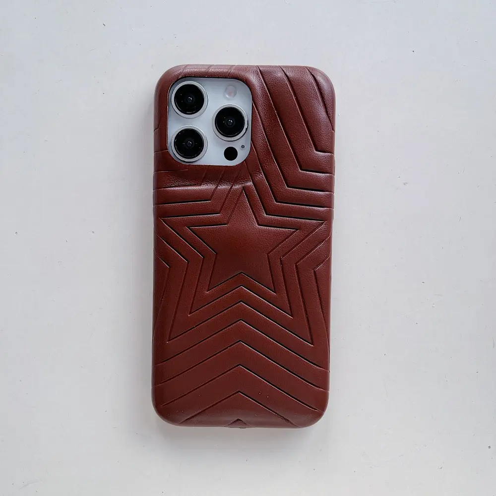 Luxury Solid Color Five-Pointed Star Embossed Injection Molding 360 Protection Phone Case for 16/15 Pro Max for 14/17