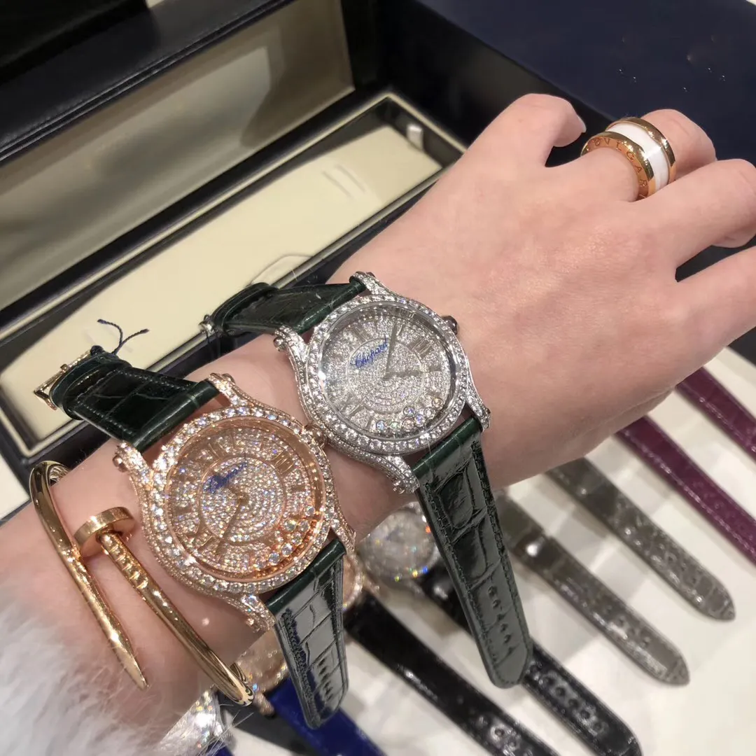 Luxury Women's Sport Watch with Roman Dial Iced Out Diamond Sapphire Glass 18mm Crocodile Band Water Resistant Hip Hop Style