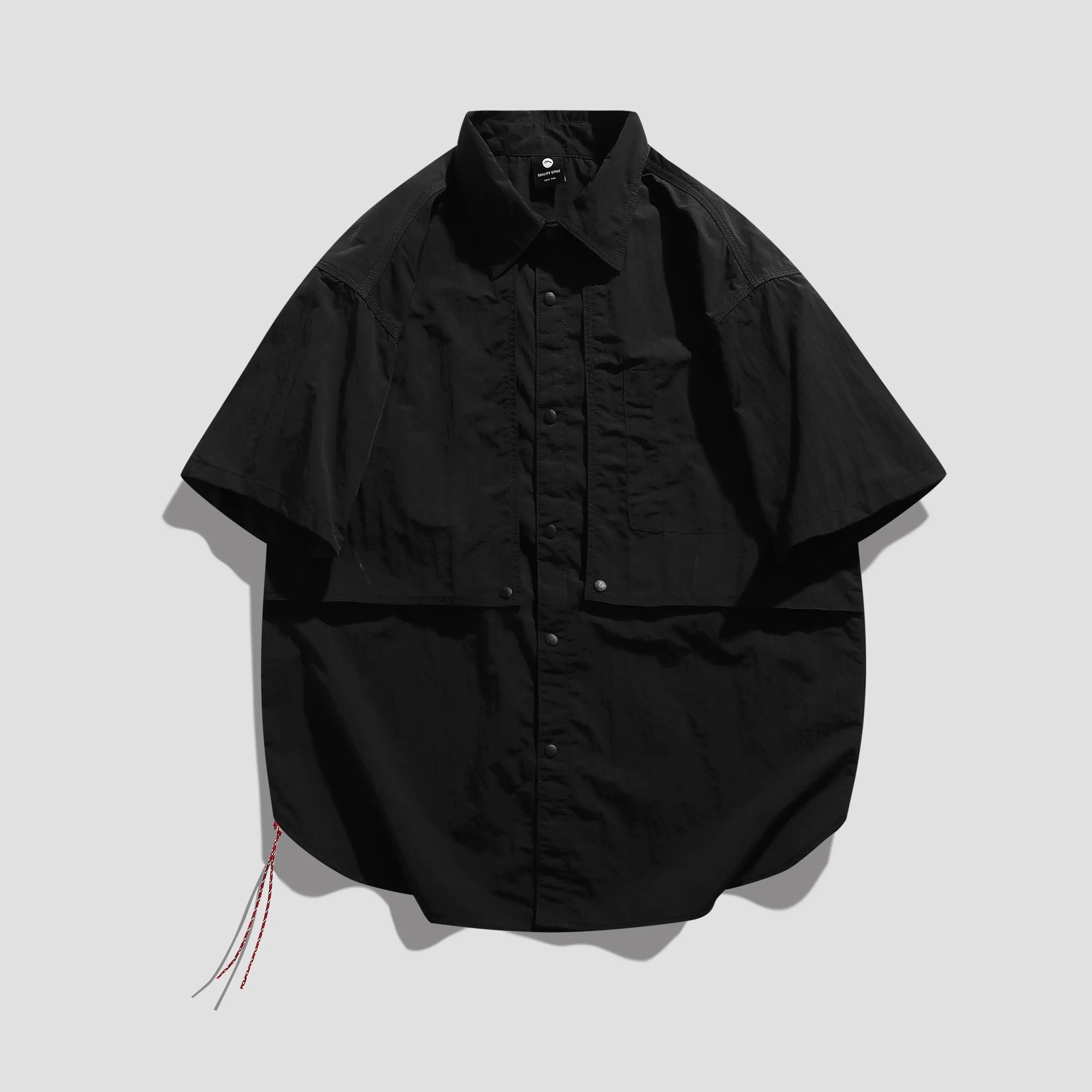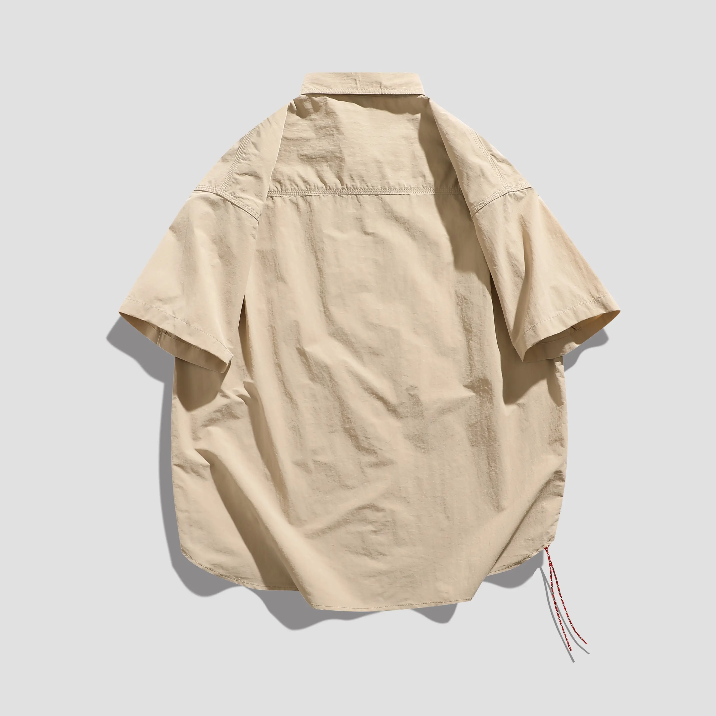 Men's Professional Casual Short Sleeve Work Shirt Breathable Anti-pilling Button-Up Solid Color Pockets XL Size Single Summer