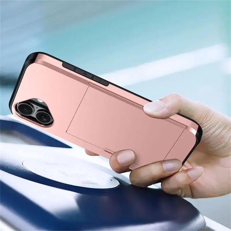 New Design Slide Card Insertion Push Card Wallet Phone Case iPhone 16 15 14 13 12 11 Pro Max Shockproof Protective Case Made PC