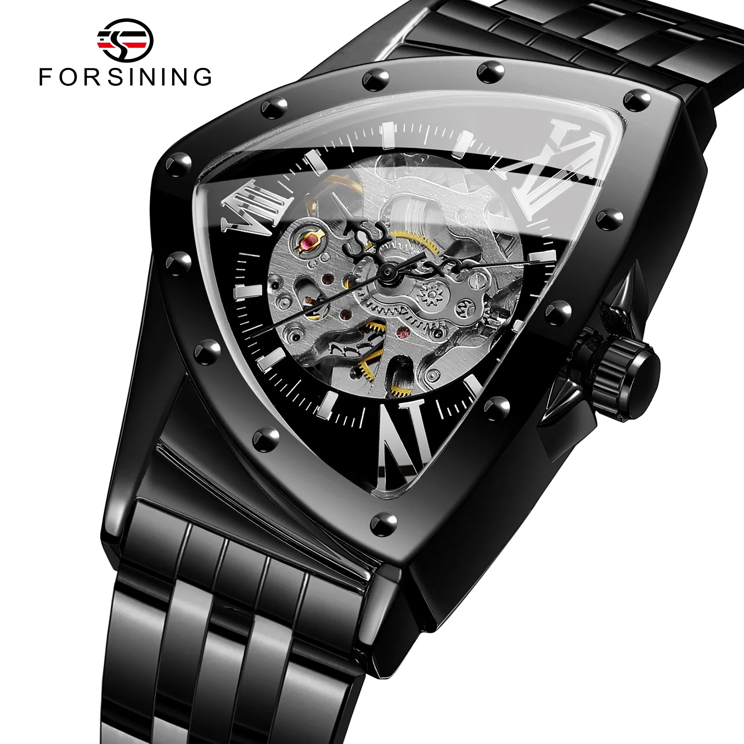 Newest Reloj Para Hombre Luxury Custom Men Triangle Skeleton Watch Wristwatch Mechanical Watch