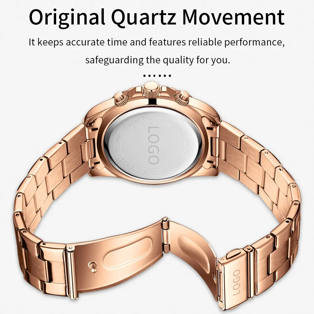 Custom Stainless Steel Japan Movement Calendar OEM Gold Luxury Watch Men Uhren High Quality Quartz Watch Orologio Uomo