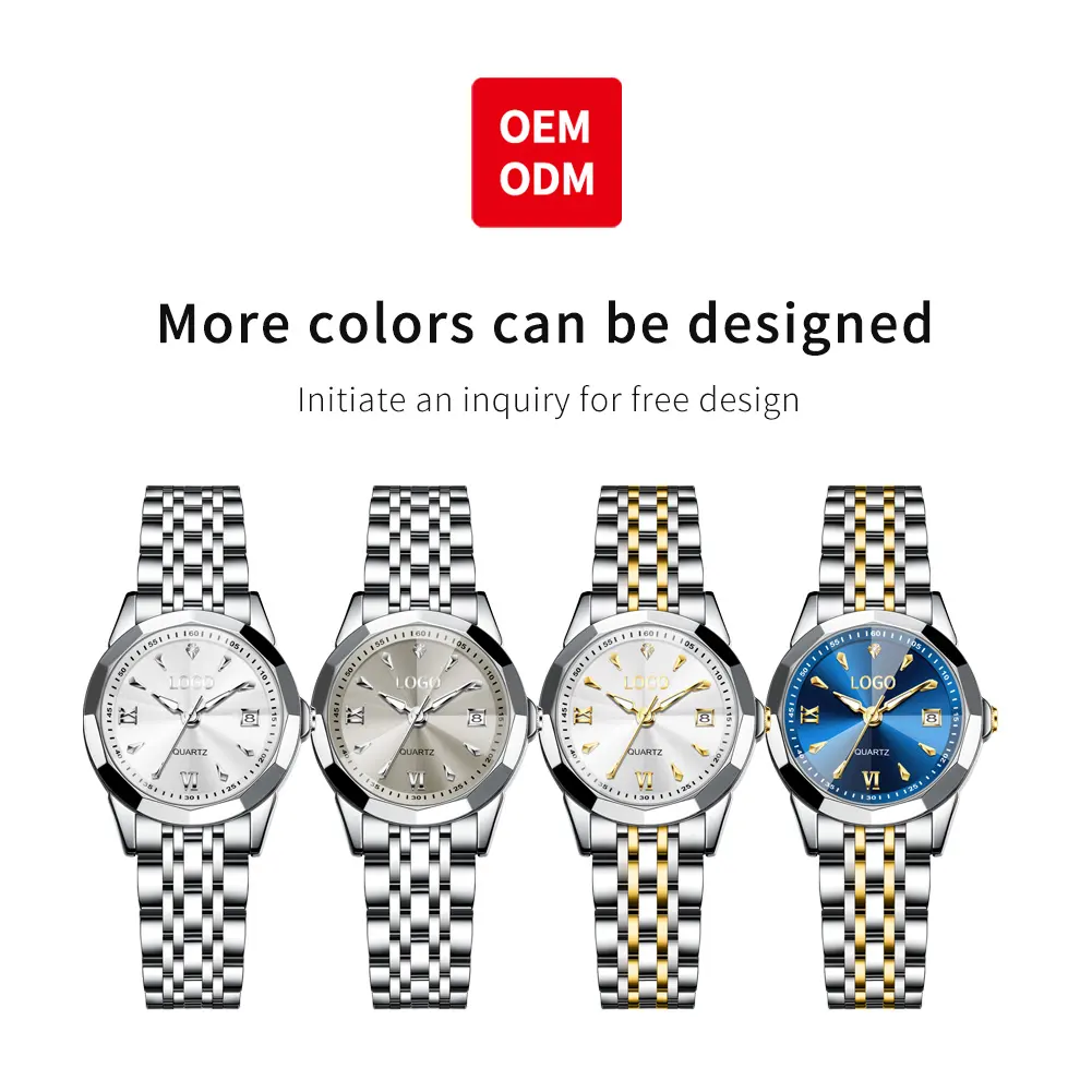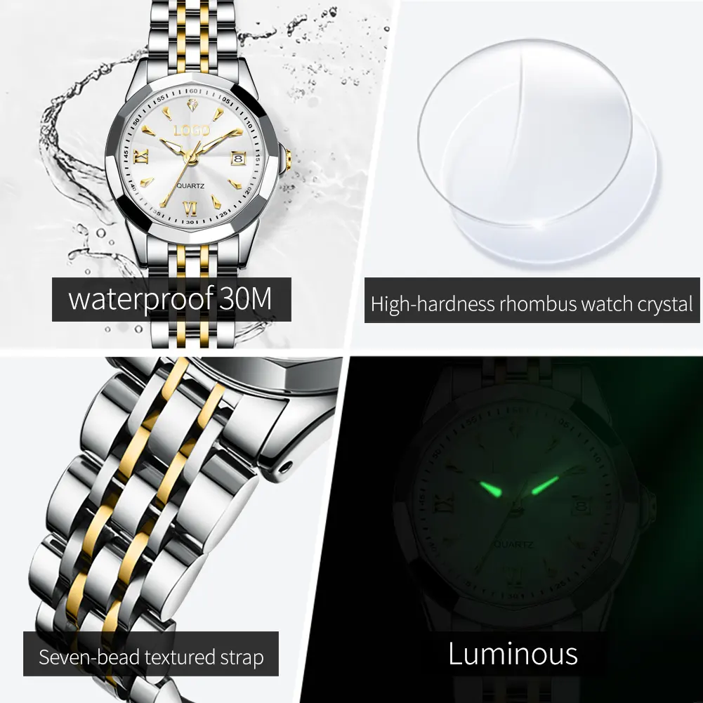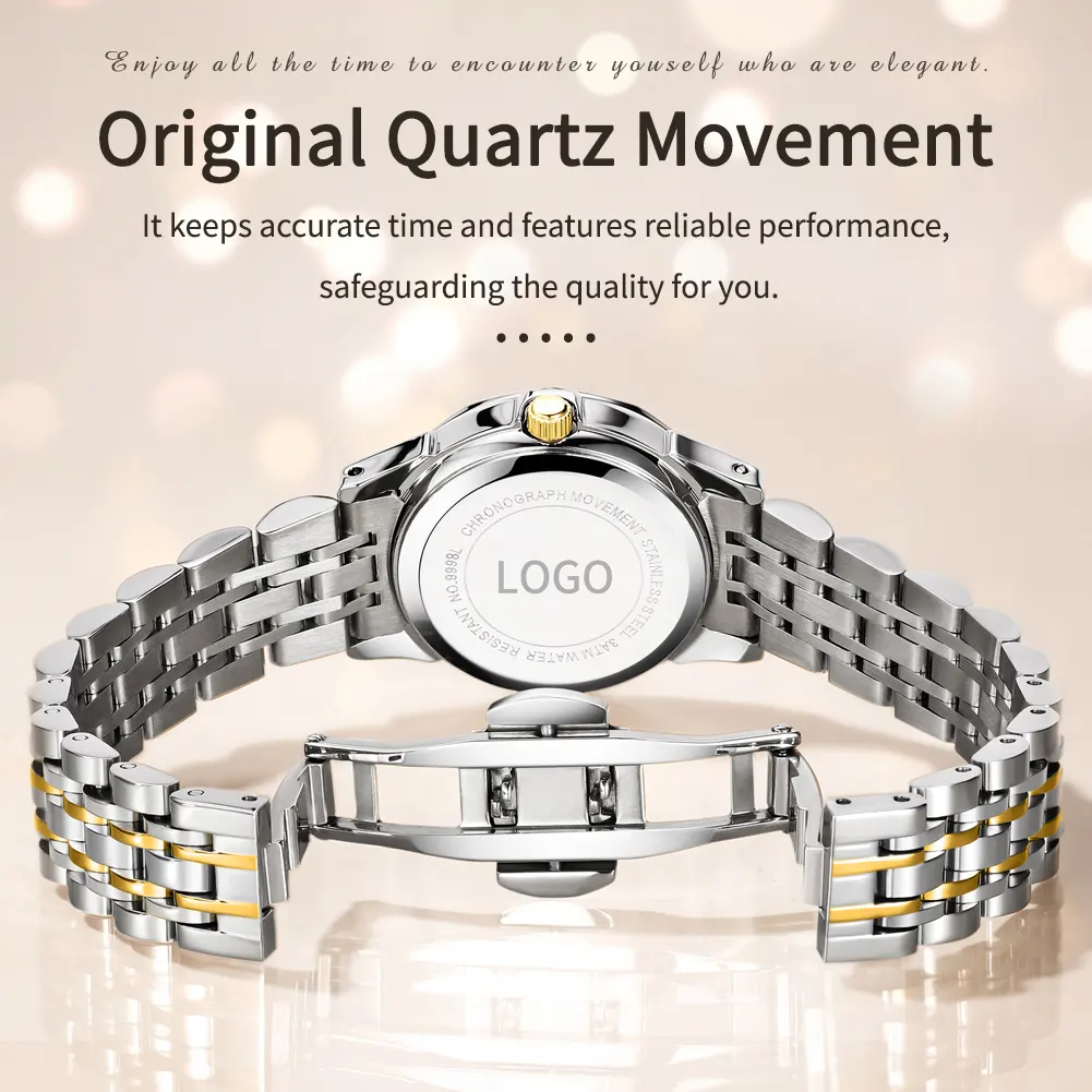 OEM 9998 Women Stainless Steel Strap Watch Original Quartz Movement Life Waterproof Luminous Dual Calendar