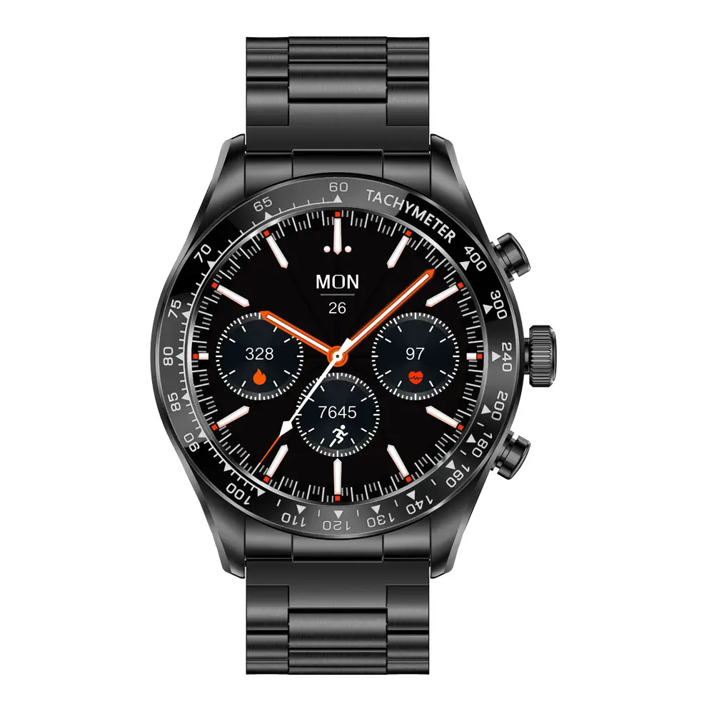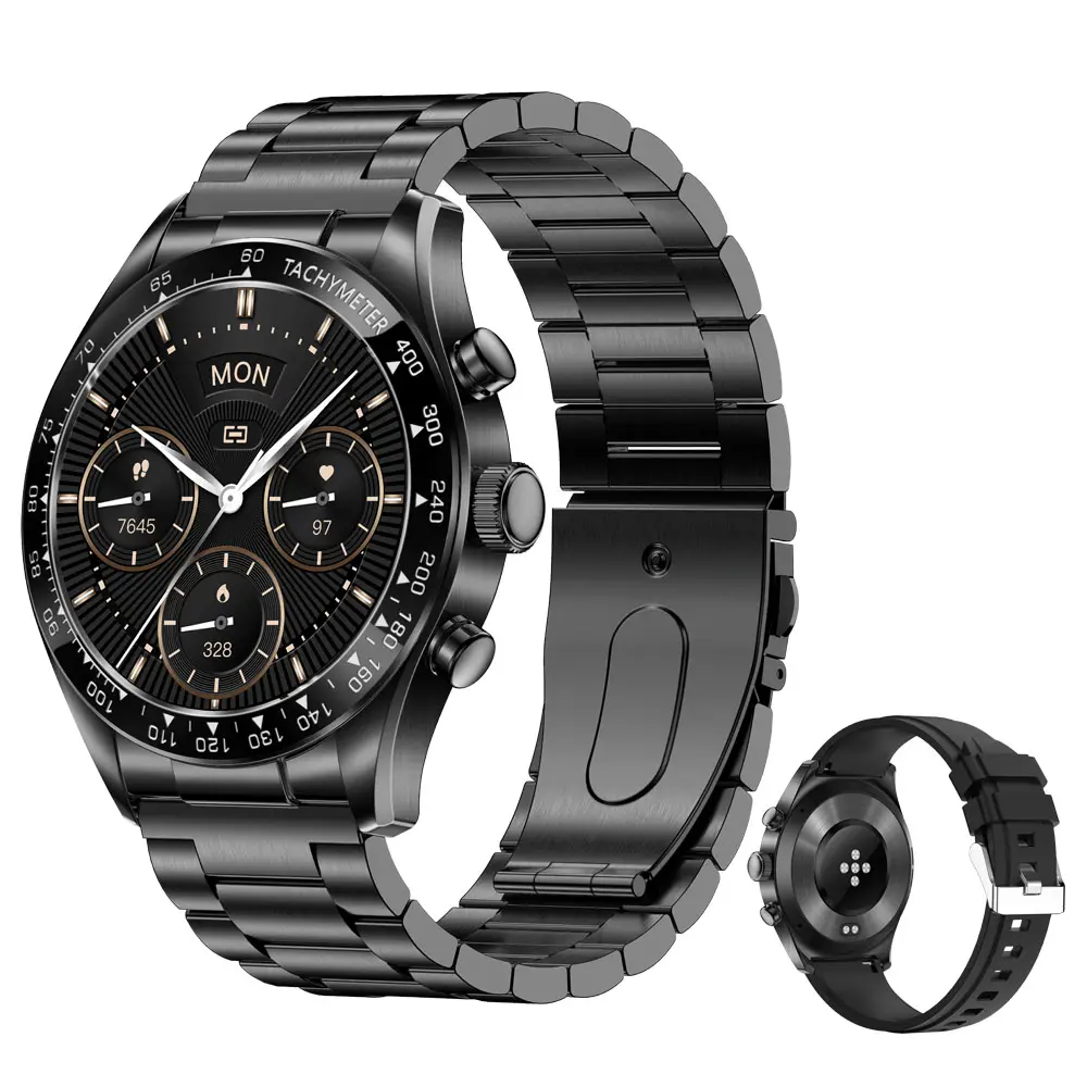 Premium Look 1.32AMOLED Display Stainless Steel Case Low-Power MCU Electroplating Zinc Alloy Bezel Men Business Smart Watch