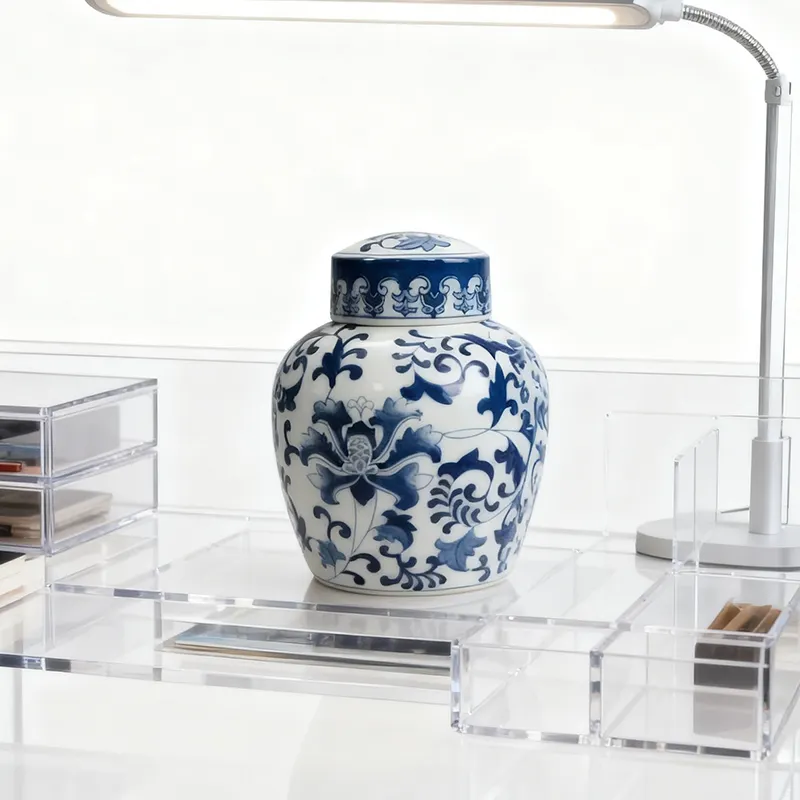Qianrui Hot Selling Ceramic Jar with Lid 18*22cm Hand Painting Antique Floral Jar Tabletop Pattern Vases for Home Decoration