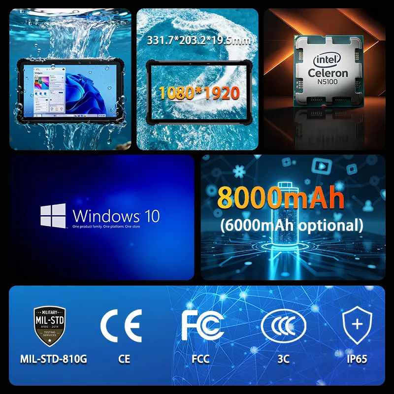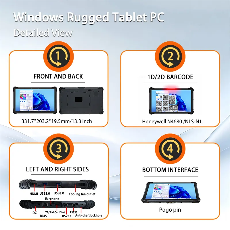 Sincoole ST13J Rugged Tablet 13 Inch 13.3" Windows 11 Pro Tablet Intel N5100 IP65 Waterproof 8000mAh for High-end Manufacturing