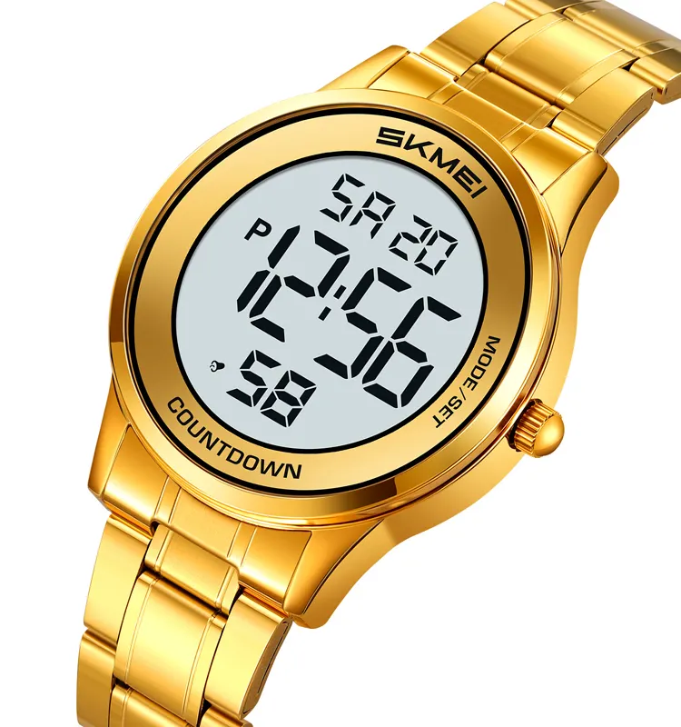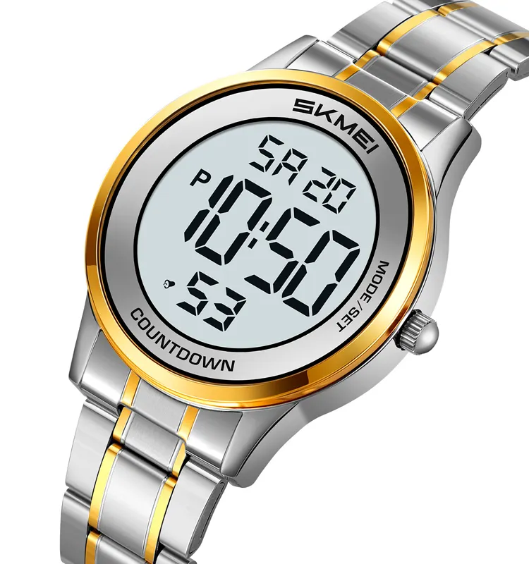 Skmei 2425 Men's Stainless Steel Round Dial Sports Digital Watch Gold Luxury LED Display Factory Guangzhou Wristwatch