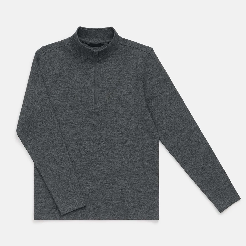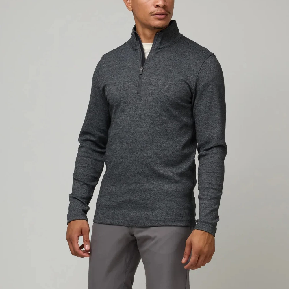 Solid Color Regular Fit Merino Wool Breathable Men Quarter Zip Long Sleeve Pullover Fashion Style Tee