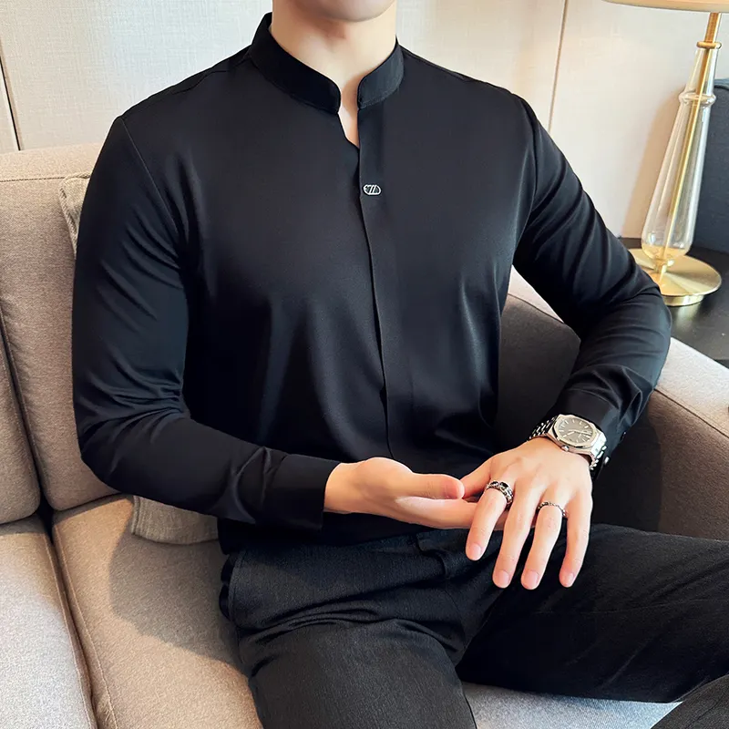 The New Chinese-Style Men'S Shirt Light And Luxurious Long-Sleeved Men'S Simple Shirt