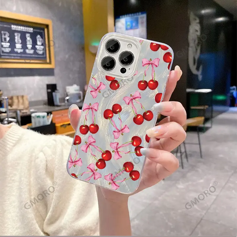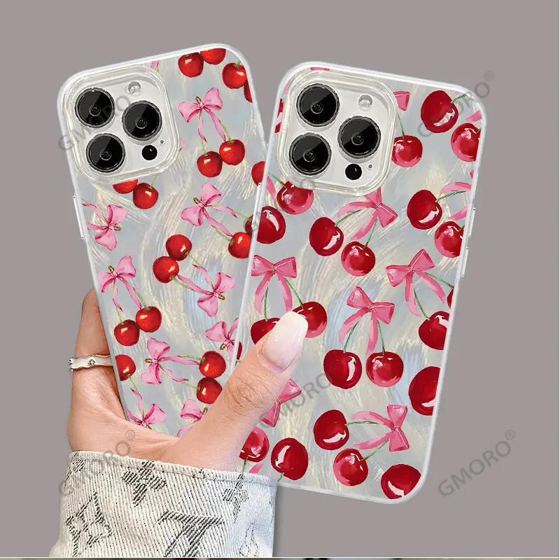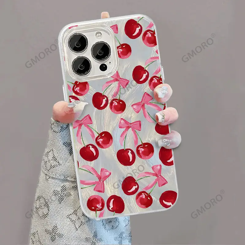 TK Hot-Selling Cherry Feather Yusha IPhone15 High-Value Phone Case for 16/17 Pro Max Glitter Bow Shockproof Women