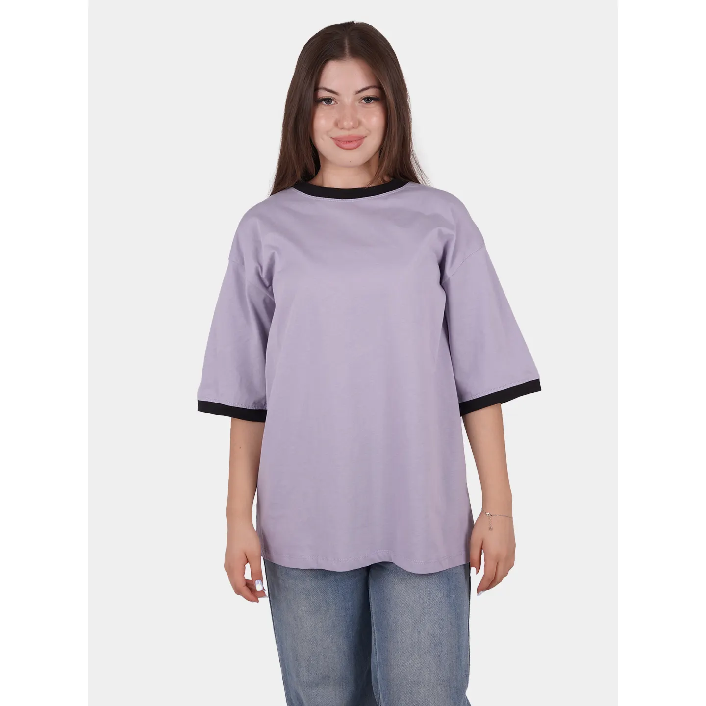 Trendy Casual Eco-Friendly Unisex Tee Purple Color Soft Breathable Shirt with Black Edges