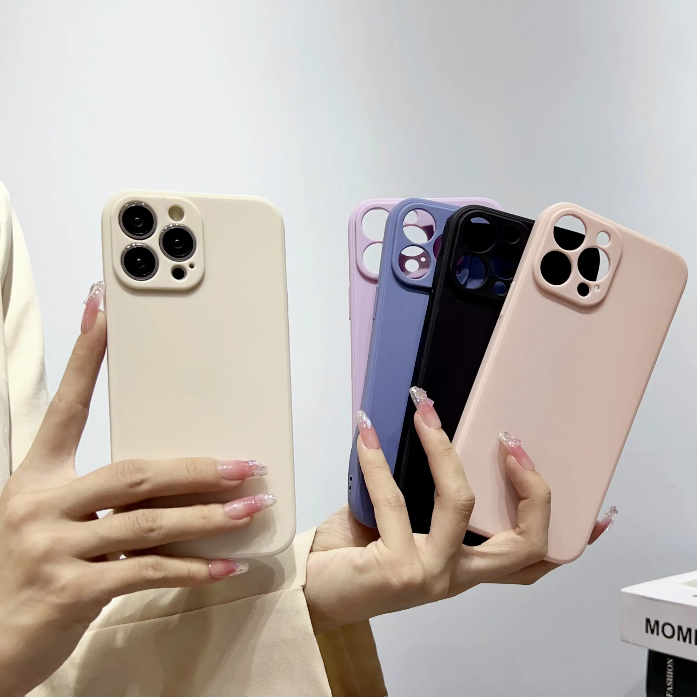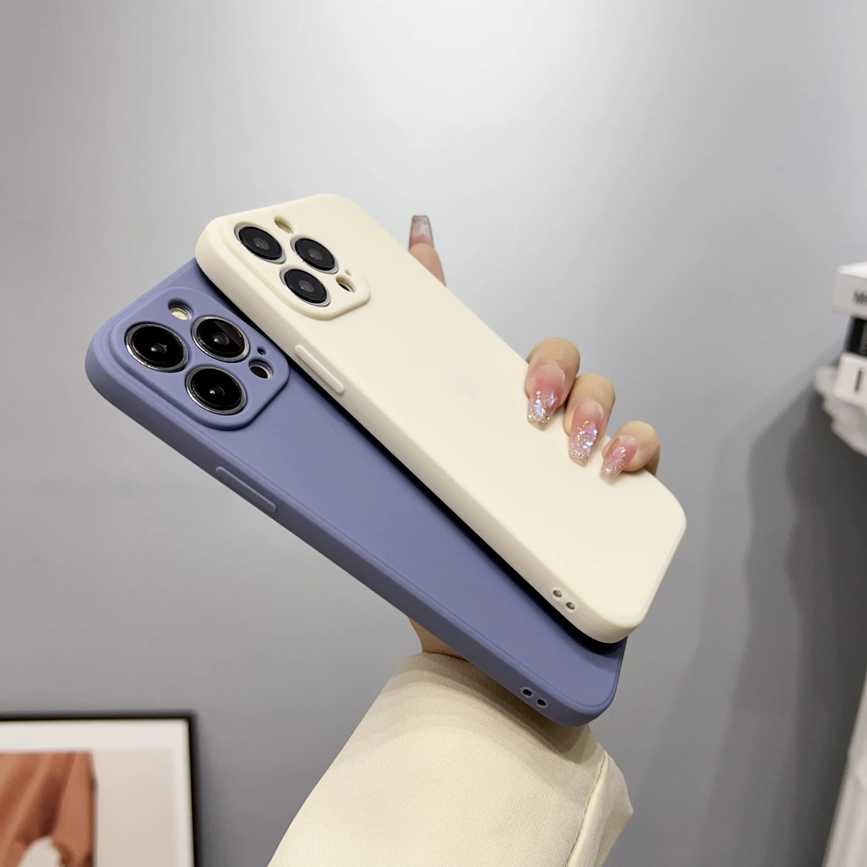 Wholesale Shockproof Solid Color Soft Silicone Luxury Design Mobile Case 360 Full Cover Camera Protection for 16/15/14/13