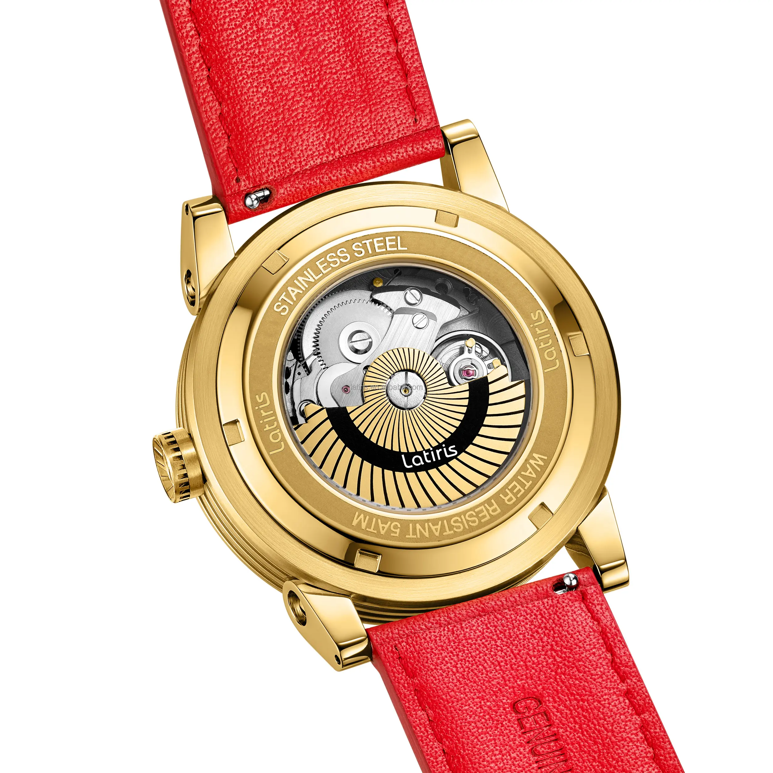 Factory Custom Stainless Steel case Leather Trap Japan Movement Men's Automatic Sun and Moon Phase Watch