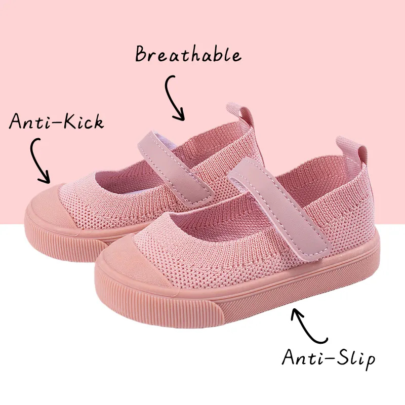 Wholesale Custom Lightweight Knit Breathable Casual Shoes for Baby Girls-Anti-Slip Comfortable Flat Walking Sneakers