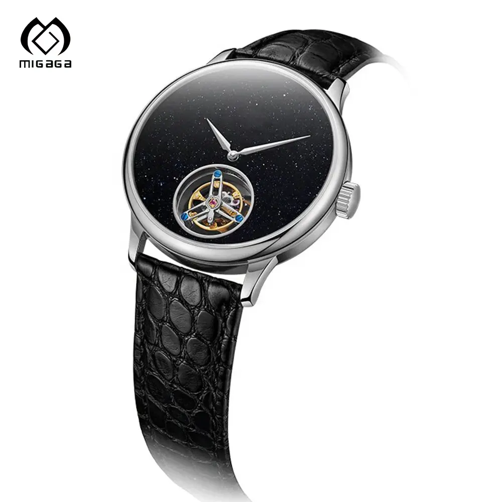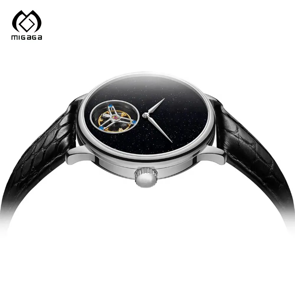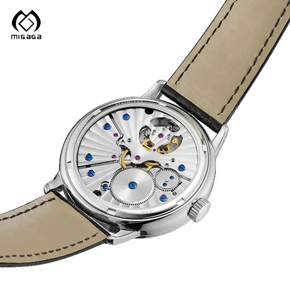 Wholesale High Quality Pointer Skeleton Black Leather Trap Luminous Watches 45 mm Watch for Men Automatic