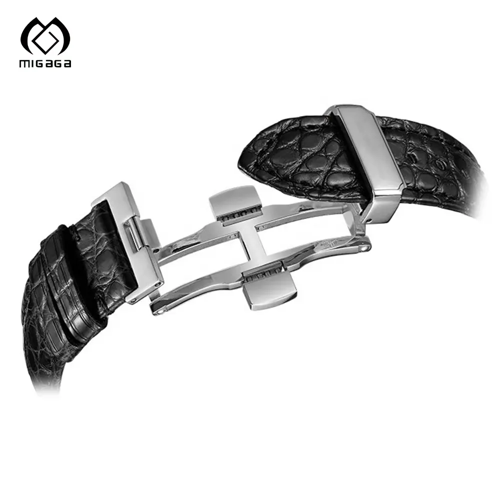 Factory Custom Stainless Steel case Leather Trap Japan Movement Men's Automatic Sun and Moon Phase Watch