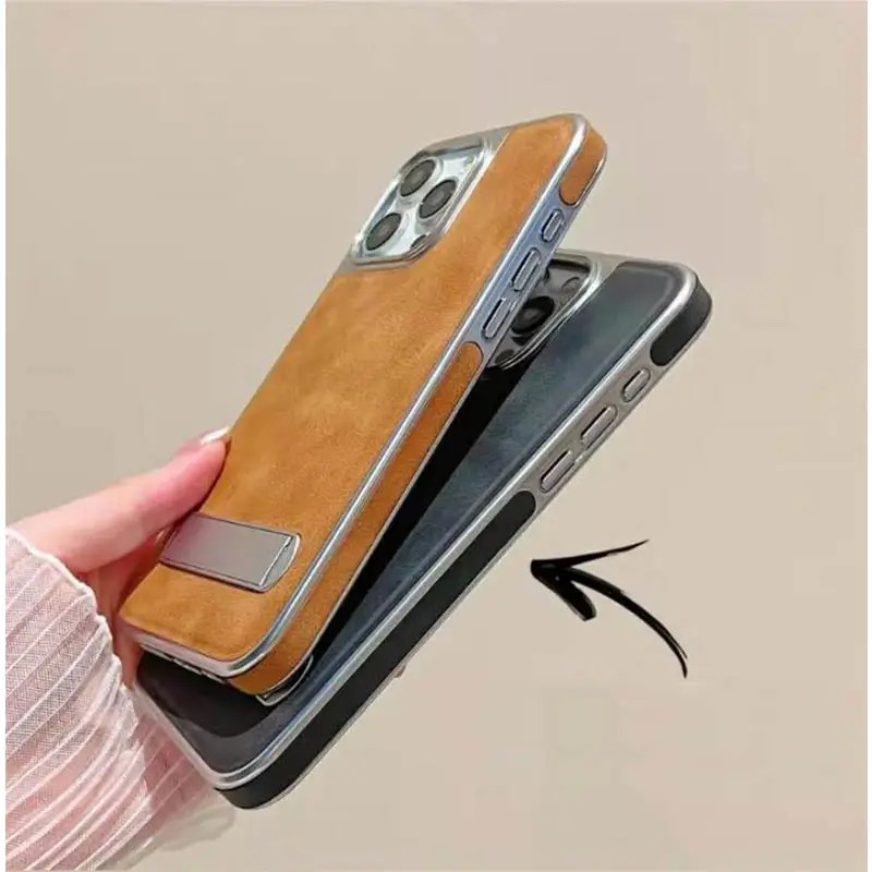 Wholesale PU Leather Mobile Phone Cases for iPhone 17 Air Pro Max 16 15 14 13 12 With Hidden Stand Shockproof Protective Cover